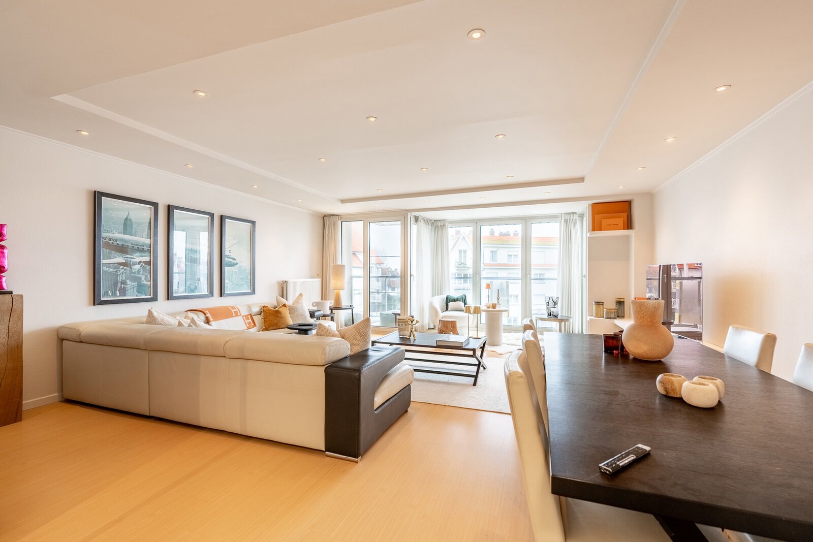 This bright apartment is located on Kustlaan in Zoute, between Driehoeksplein and Albertplein, and enjoys an exceptional and permanent open view of the villas and the hinterland.