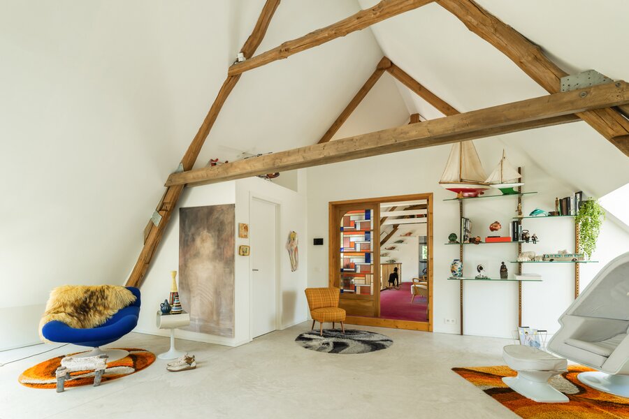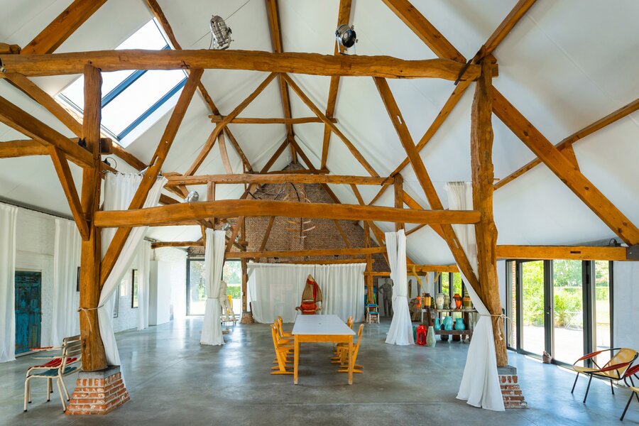 "Barn" is an understatement for this breathtaking sea of peace and space, complete with its own kitchen – the perfect setting for a private collection, studio, gallery, or an inspiring base for coaching sessions and workshops. The former baker’s house, with two bedrooms and a bathroom, makes a dream guest house or nanny’s quarters, but could just as well serve as a home office, workshop, or studio.