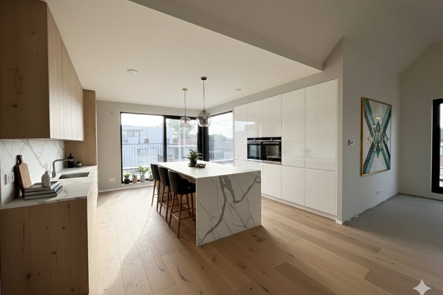 You choose the finish yourself: kitchen, bathroom, floor, light,... in accordance with the set budgets.