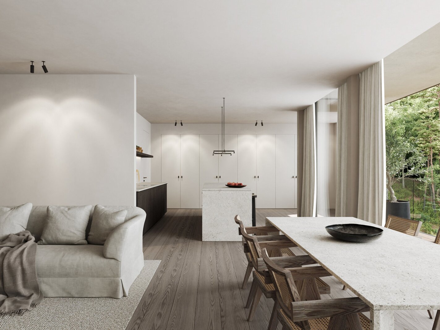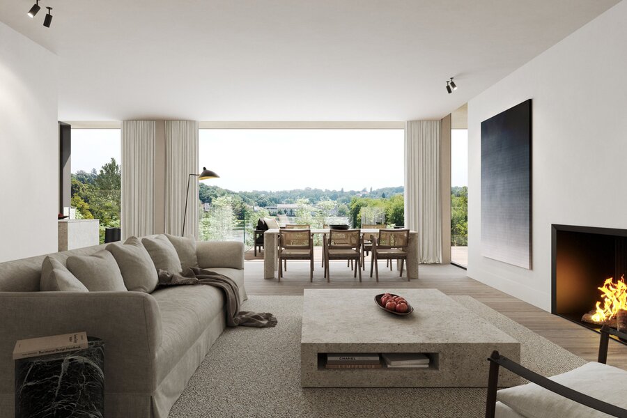 Nestled in lush greenery in the heart of La Hulpe, overlooking the Grand Pond, this contemporary new development – the result of a collaboration between Marc Corbiau and Vlassak-Verhulst – features exclusive apartments within two villas.