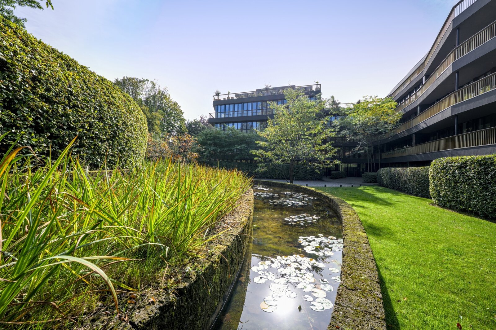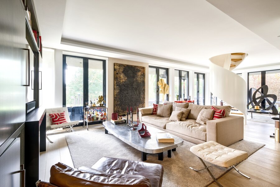 Located within a secure 1.5-hectare estate in the highly sought-after Hamoir district, Victoire-Junot offers you this exceptional garden-level duplex offers a spacious surface area of ± 338 m², complemented by terraces and a beautifully landscaped garden. This property has a luxurious and comfortable living experience with high-end finishes throughout.