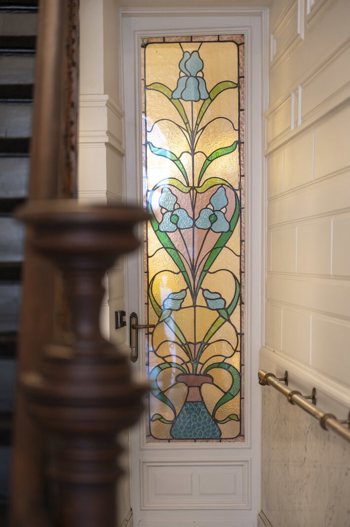 In the middle of the historic South and situated in the backyard of the renovated Royal Museum of Fine Arts, this completely renovated art-nouveau mansion is part of 'The Five Continents', a housing ensemble designed by architect F. Smet-Verhas.