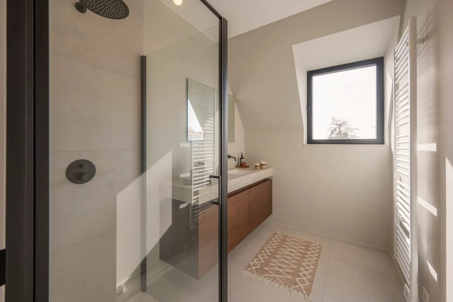 This new-build home, ideally located in a quiet area near the town centre, is equipped with solar panels, a garage, and a southwest-facing garden with a landscaped terrace. Thanks to the underfloor heating and solar panels, the house is also particularly energy-efficient.