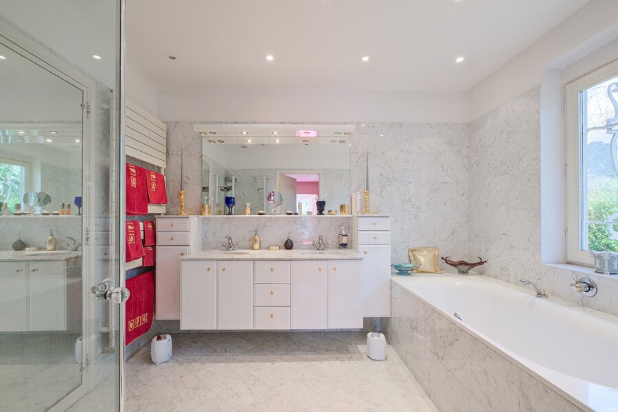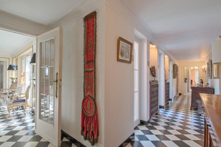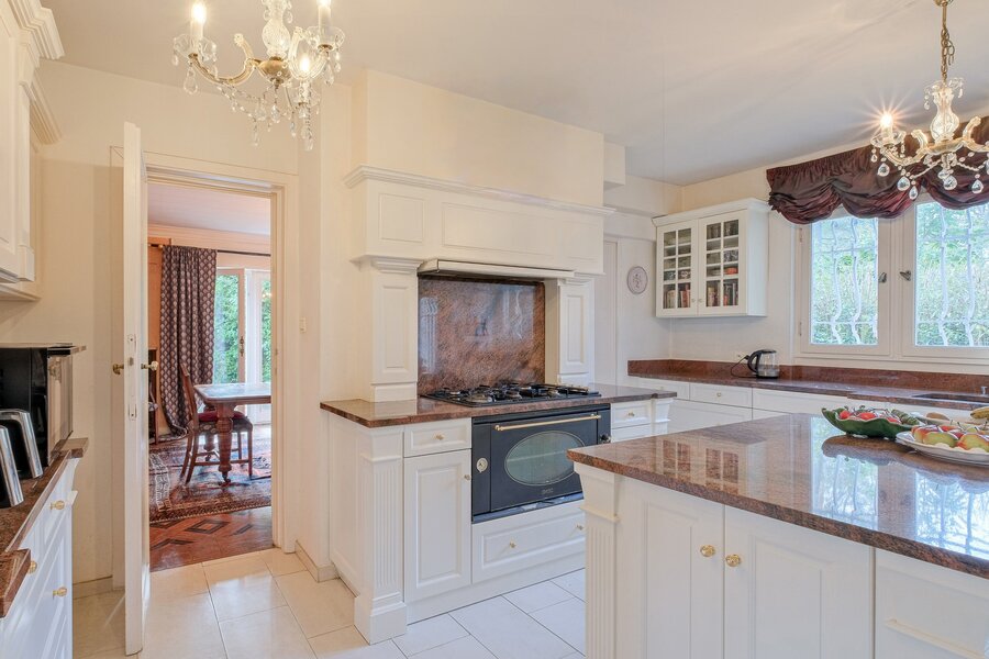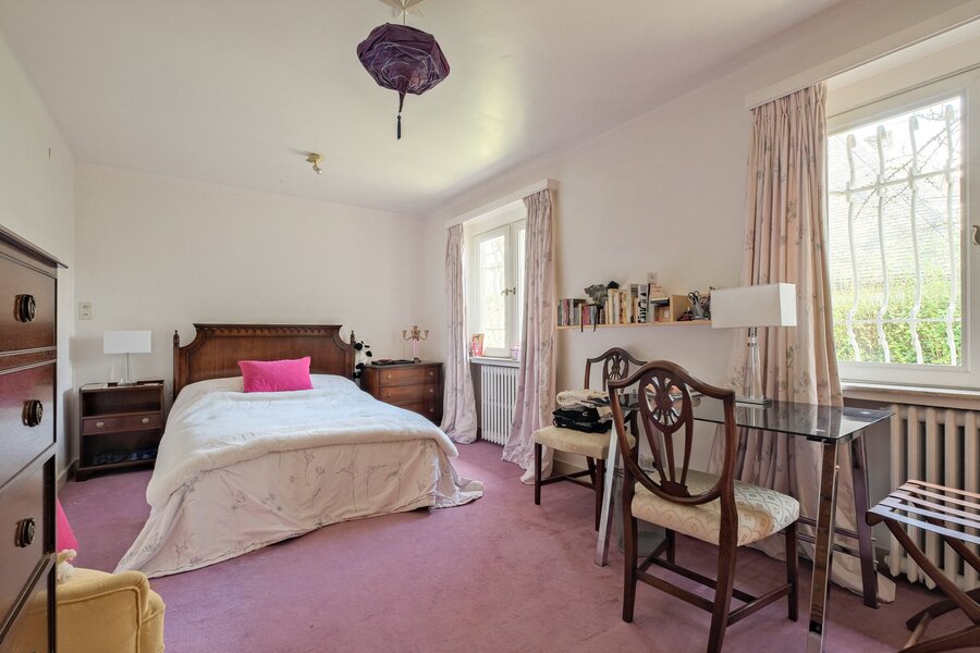 Prince d'Orange, exceptional villa of approximately 421 m² gross floor area on a plot of approximately 19.6 acres. It comprises: a spacious entrance hall of approximately 20 m² leading to a central patio of approximately 47 m², cloakroom and guest toilet, kitchen of ± 18 m², bright living room of ± 50 m², dining room of ± 21.5 m², master suite of ± 36.5 m² with en-suite bathroom of ± 9 m², 2 bedrooms of ± 19 and 15 m², shower room, terrace of ± 40 m² and garden of ± 15.7 acres facing south. First floor: ± 14 m² hallway, ± 3 m² corridor, 2 bedrooms of ± 23 and 21 m², ± 7 m² bathroom, unfinished attic. Also: cellars, laundry room and garage. Architect-designed villa (Devos), many original features and prestigious materials, recent condensing gas boiler. PEB: G. View without delay at Vaneau Lecobel.
