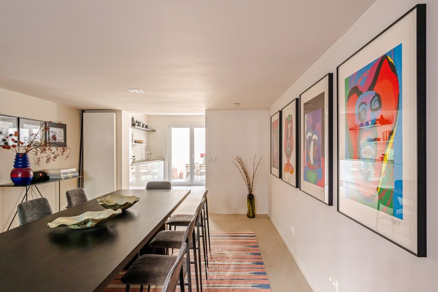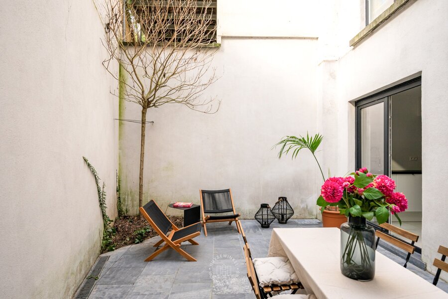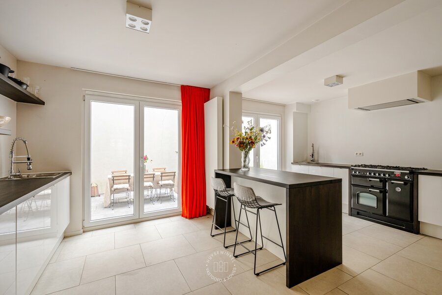Het gelijkvloers is een harmonieus geheel met een stijlvol salon met bar, ideaal om gasten te ontvangen, een sfeervolle knusse zithoek, een gastentoilet en een praktische berging. Het souterrain is voorzien van een volledige uitgeruste keuken met eiland en bijhorende zitmogelijkheid, voorzien van alle nodige apparatuur met aansluitend nog een extra dineerruimte. Vanuit de keuken heeft u toegang tot een aangename stadskoer, perfect om in alle rust te ontspannen.