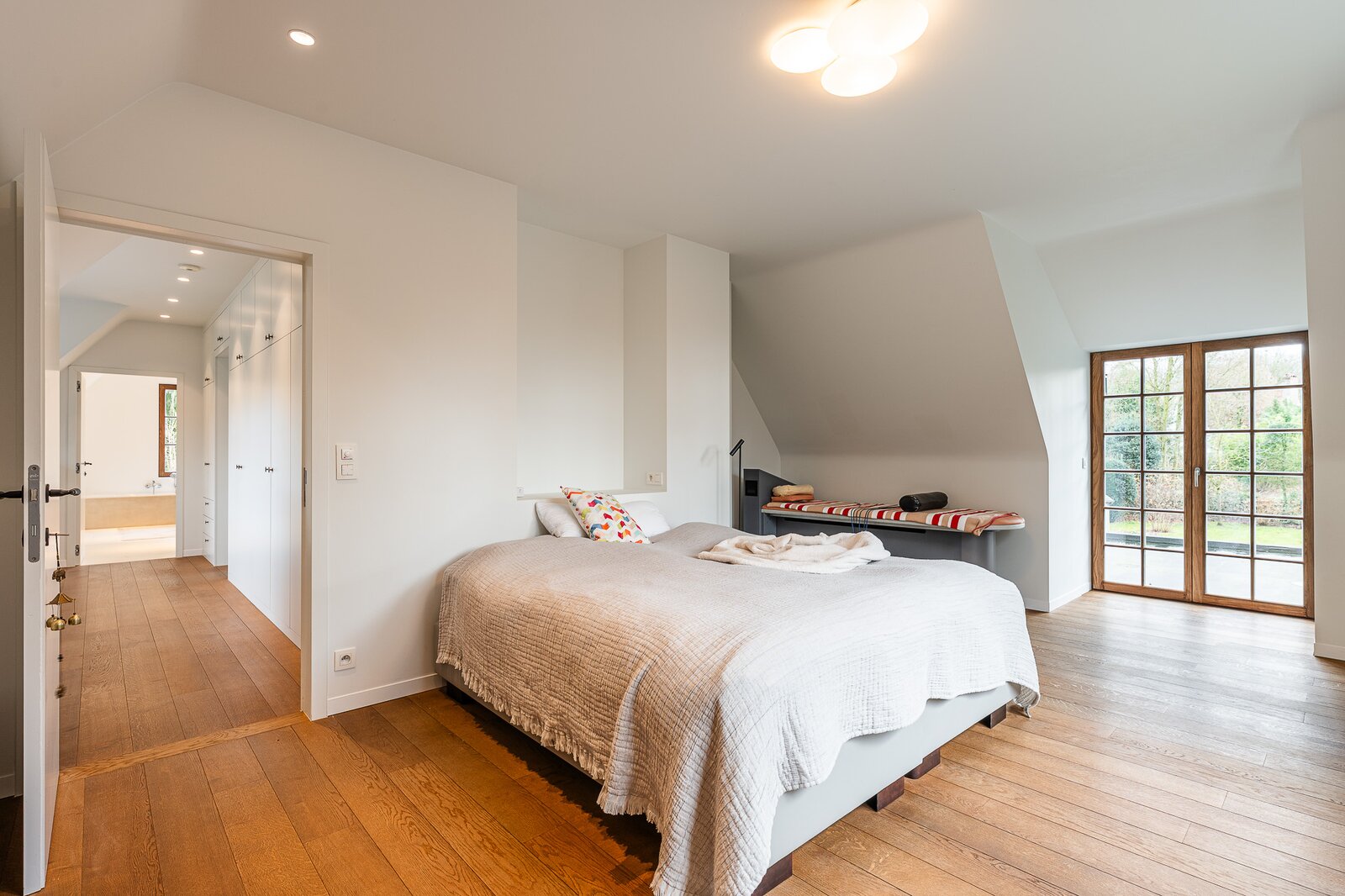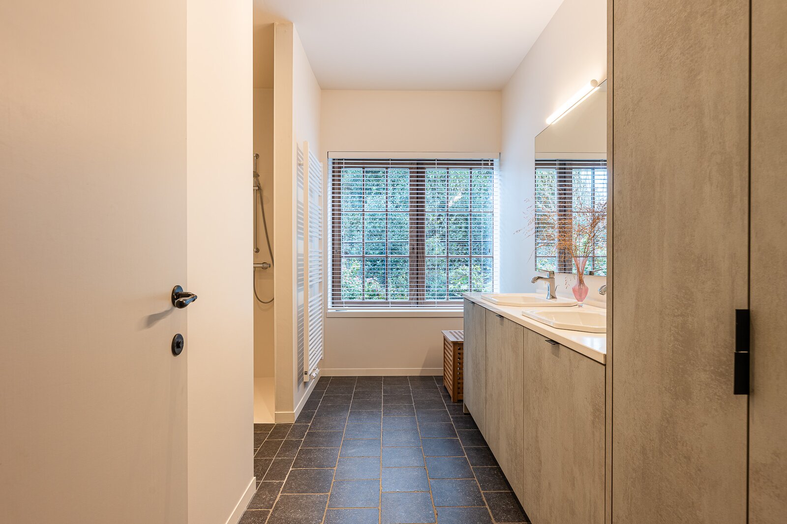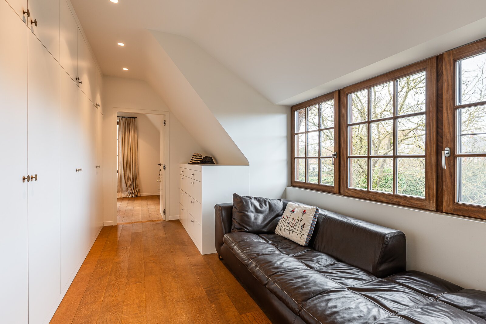 De fotoreportage toont u de verfijnde afwerking, de doordachte indeling alsook de overvloedige lichtinval. De grote raampartijen zorgen doorheen de dag en ieder seizoen voor een aangename en open sfeer in elke ruimte.