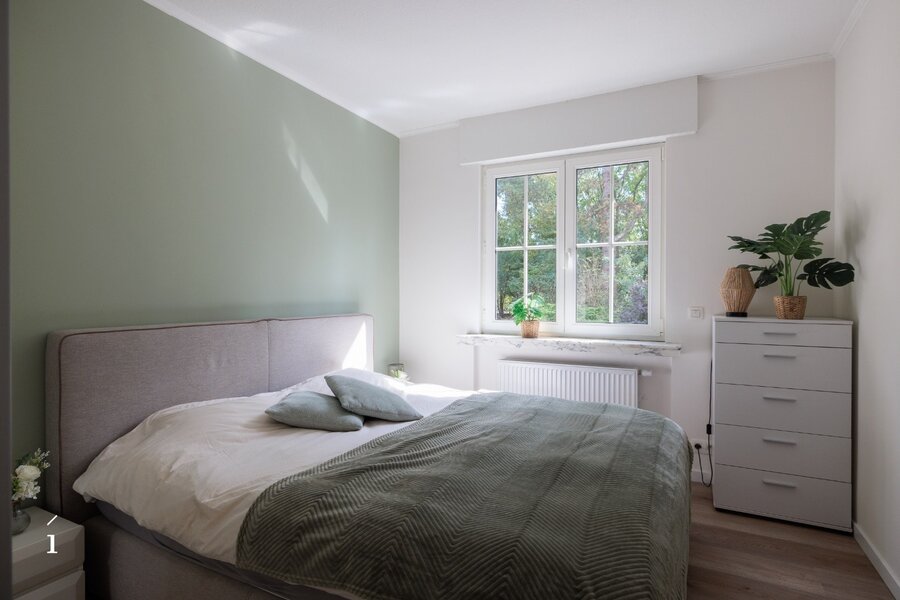 Op de gelijkvloerse verdieping bevinden zich nog twee volwaardige slaapkamers, daarnaast zijn er twee badkamers, één apart en de andere aansluitend op een van de slaapkamers. – ideaal voor gezinnen of gasten. In de centrale hall bevindt zich bovendien de toegang tot de kelderruimte, die tal van mogelijkheden biedt voor opslag.