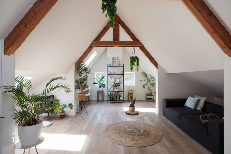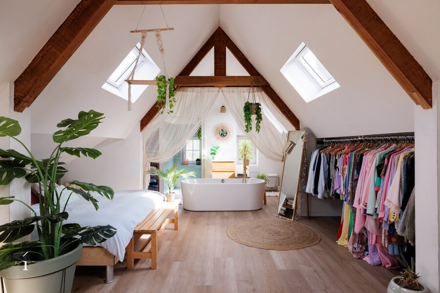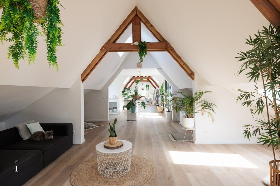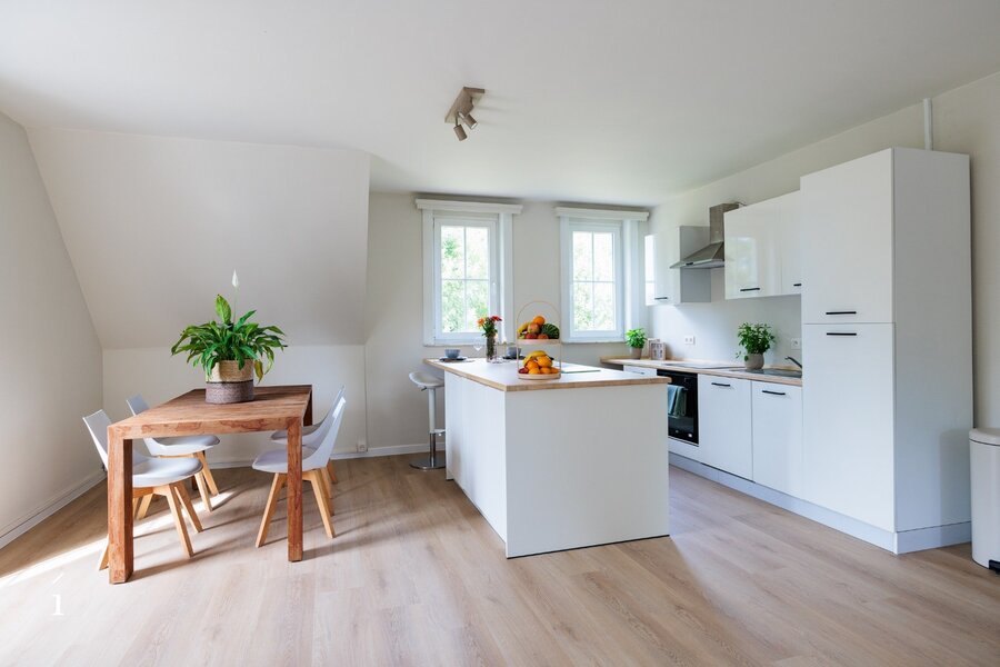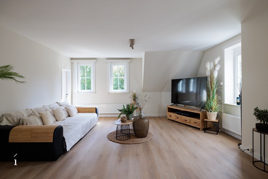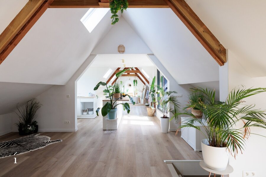 Op de bovenste verdieping bevindt zich een ruime loft die volledig zelfstandig is ingericht. Deze beschikt over een eigen keuken, een comfortabele badkamer met zowel een ligbad als een douche, en een gezellige slaapkamer. Daarnaast is er de optie om een tweede slaapkamer of bureau te creëren, wat de loft extra flexibel maakt – ideaal voor gasten, thuiswerken of een persoonlijke hobbyruimte.