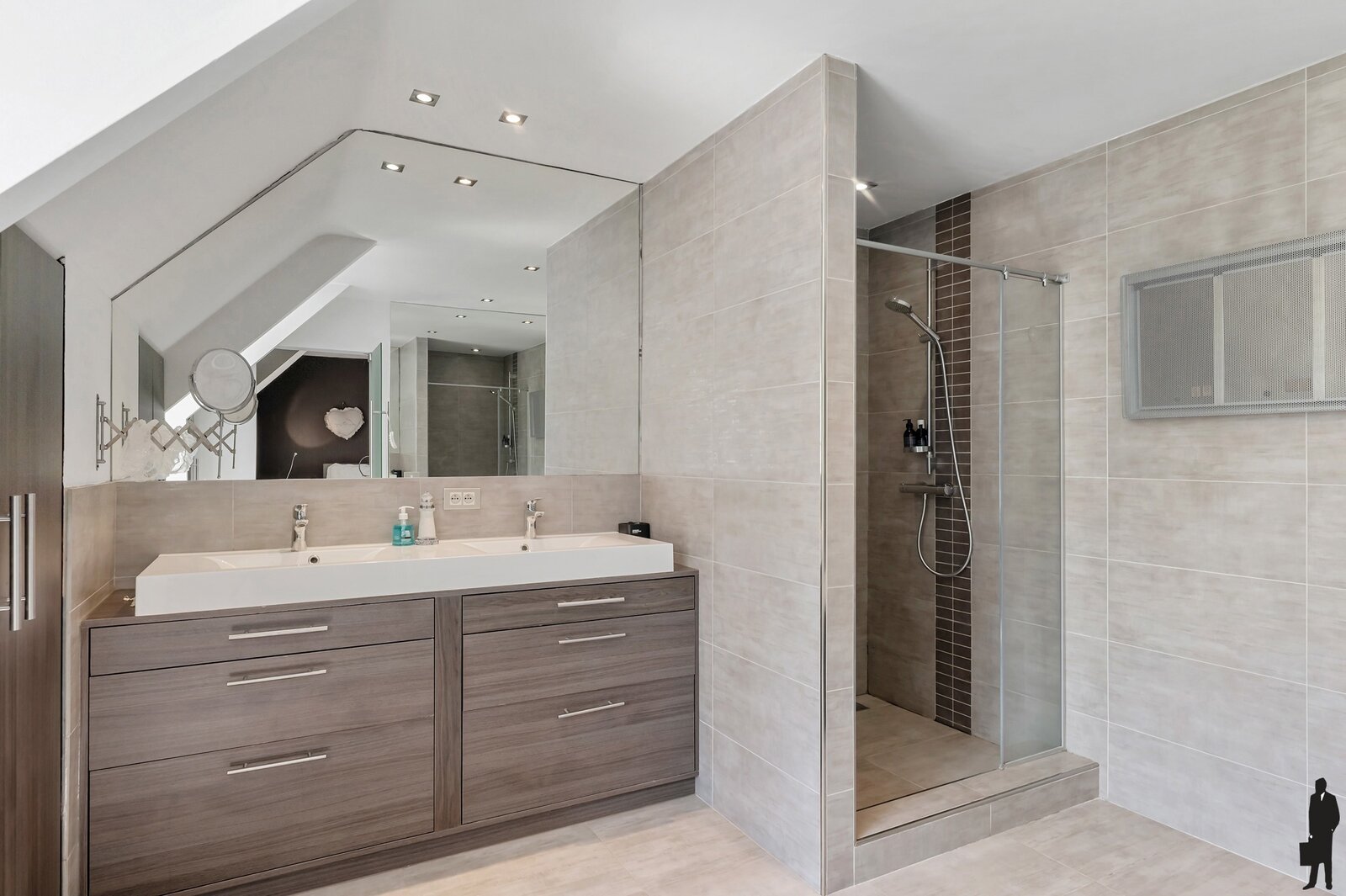 De absolute eyecatcher is de impossante inkomhal, de ruime leefruimte en de tuin met verwarmd zwembad, waar rust en privacy centraal staan – een oase voor wie houdt van comfort en ontspanning.
