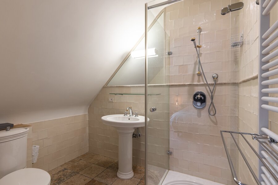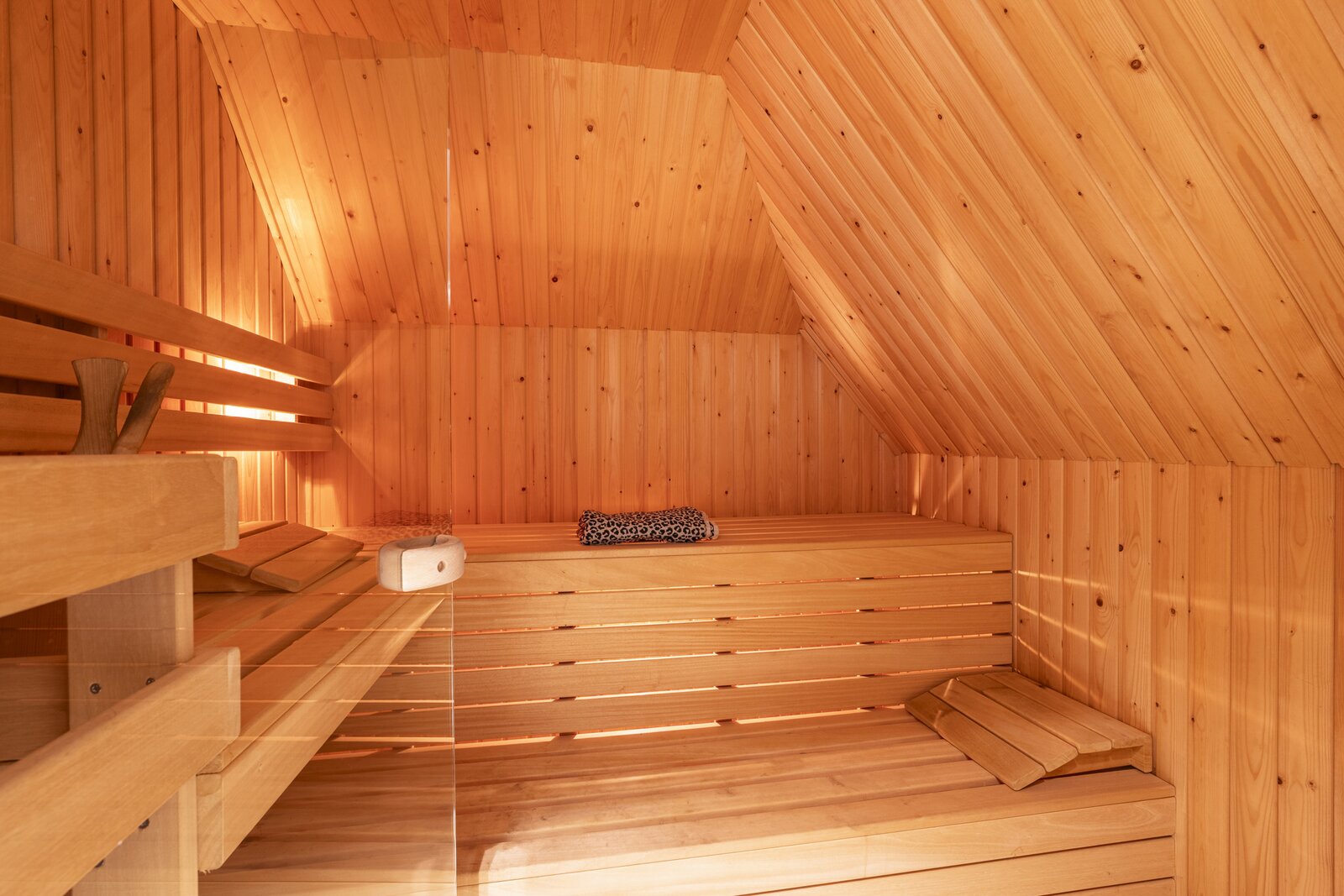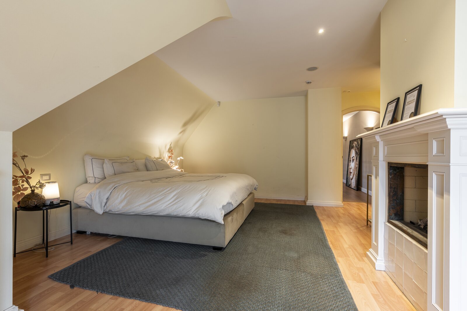 Eerste verdieping: De eerste verdieping is opgedeeld in twee vleugels. Aan de rechterzijde bevindt zich een royale mastersuite met gashaard, een ruime dressing en een uitzonderlijk luxueuze badkamer met geïntegreerde sauna. Vanuit de masterbedroom heeft u bovendien toegang tot een ruim terras. Aan de andere zijde van de nachthal bevinden zich twee volwaardige slaapkamers, elk uitgerust met een eigen douchekamer met wastafel, douche en toilet, evenals een derde slaapkamer.