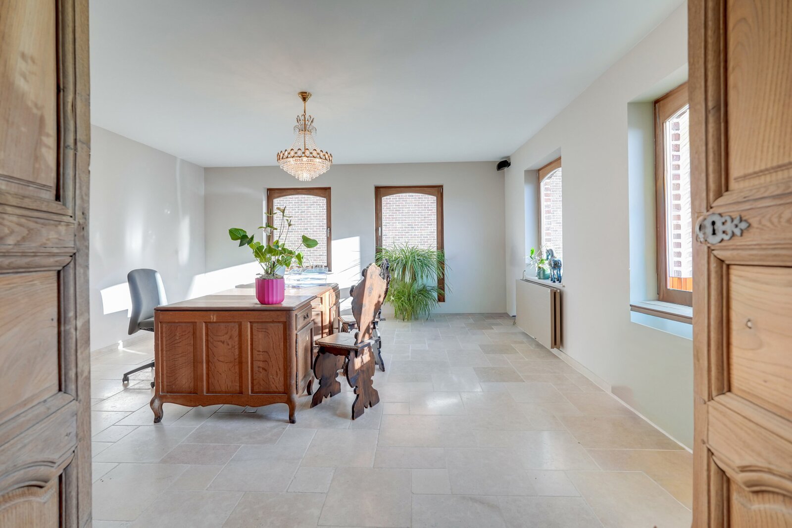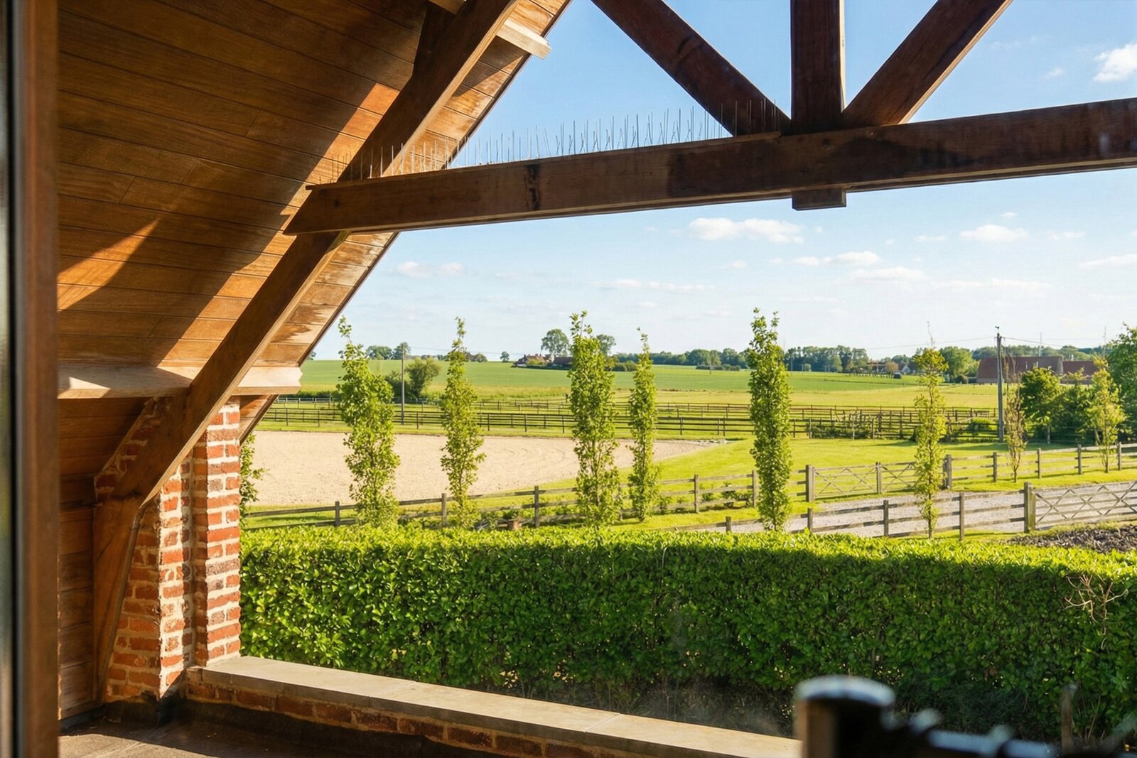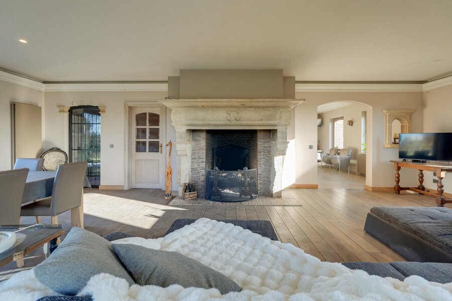 The centrally positioned country villa, built in the early 2000s, forms the elegant heart of the estate. Constructed with high-quality materials, it blends perfectly with the setting. Large windows provide abundant natural light and beautiful views over the meadows and arenas.