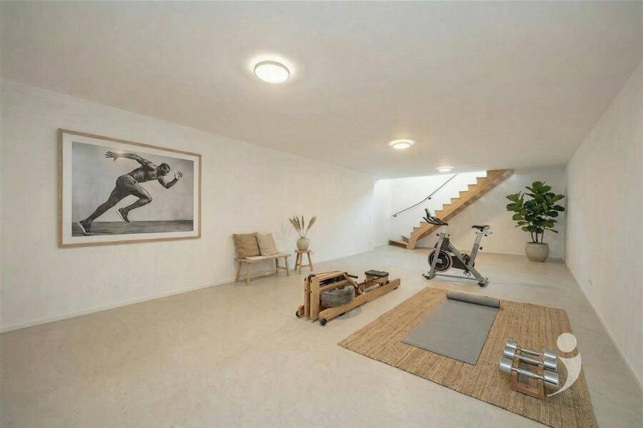 A part of this basement is a real living space, which can perfectly serve as an office or practice room, sports room, ... There is even underfloor heating.
