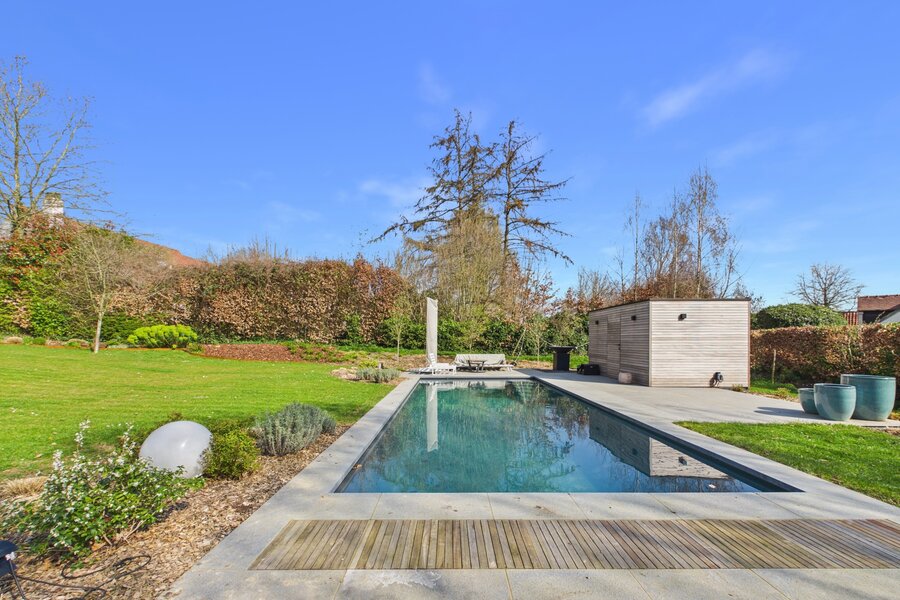 TRIOR Lasne a le plaisir de vous présenter cette splendide villa, idéalement située dans le quartier prisé du Bois Paris, au cœur d’un environnement champêtre et exclusif. Construite sur un magnifique terrain de 23ares 13centiares parfaitement orienté, cette propriété pleine de caractère développe 300m² habitables (360m² construits avec cave et grenier). Au rez-de-chaussée, le vaste hall d'entrée dessert un magnifique espace de vie de 51m² comprenant un chaleureux salon avec feu ouvert et une belle salle à manger. L'élégante cuisine familiale de 28m², entièrement équipée et baignée de lumière, dispose d’un îlot central avec coin déjeuner. Un confortable salon TV de 11,5m², un spacieux bureau de 20m² avec vue sur le jardin et une vaste buanderie fonctionnelle de 13,5m² complètent ce niveau. À l’étage, vous découvrirez une suite parentale d’exception de 44m² comprenant une chambre avec vue sur le jardin, un dressing et une salle de bain avec douche, baignoire et double vasque, ainsi que quatre belles chambres d'enfants de 15, 14, 12,5 et 12 m², une salle de bain complète, une toilette indépendante et un espace de rangement. À l'extérieur, les futurs propriétaires profiteront d’une terrasse ensoleillée, d’un vaste jardin soigneusement paysagé ainsi que d’une splendide piscine réalisée en 2024, chauffée par pompe à chaleur, et de son magnifique pool-house, parfait pour les après-midi d'été. Un portail électrique vient compléter les équipements extérieurs de cette propriété, véritable havre de paix alliant charme, confort et intimité. Possibilité d'extension (permis octroyé pour 80 m² en toiture plate). DIVERS : PEB/C - Chauffage central au mazout - Châssis double vitrage bois et aluminium - Installation électrique conforme (compteur triphasé 3×22A) - Système d'alarme - Adoucisseur d'eau - Portail électrique,... À découvrir sans tarder. Descriptif complet sur www.TRIOR.be