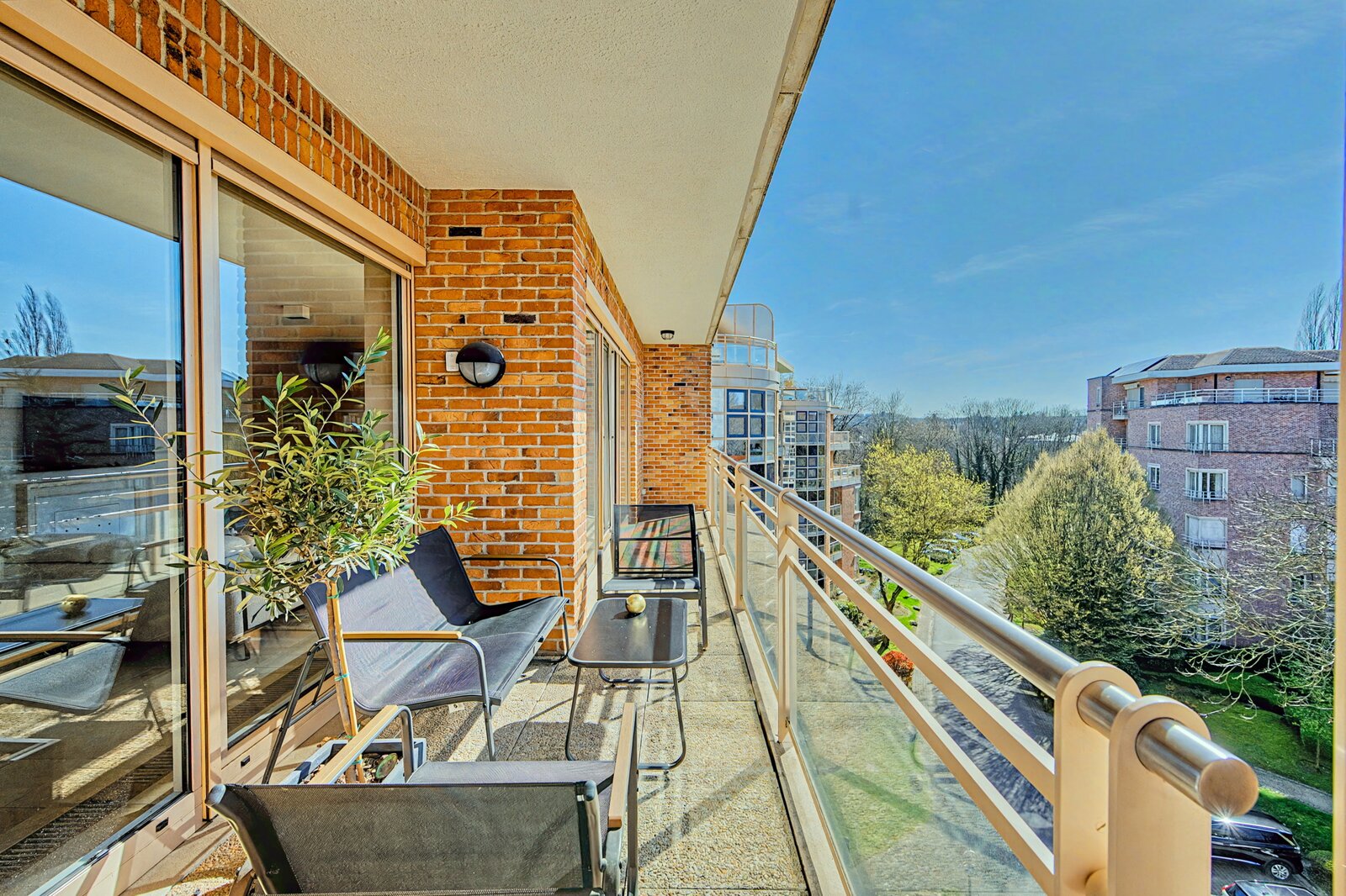 Set in a quiet, tree-lined residential estate, right next to the Bois de la Cambre, this elegant flat of approximately 170 m² is bathed in natural light. Located on the 4th floor of a luxury residence built in 1991, it was fully renovated in 2022 using high-quality materials. It features a beautiful reception room, a fully fitted kitchen, three bedrooms and two bathrooms. A pleasant terrace completes the property. Garage with adjoining cellar + a second cellar. Energy performance rating: C.