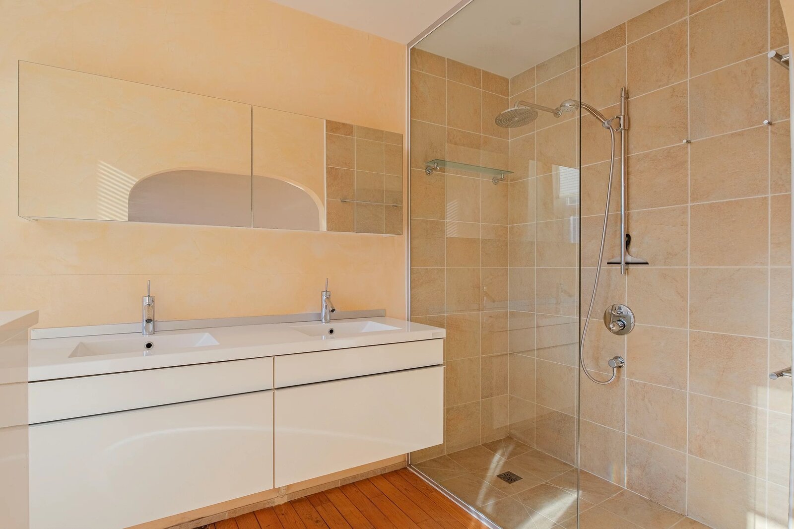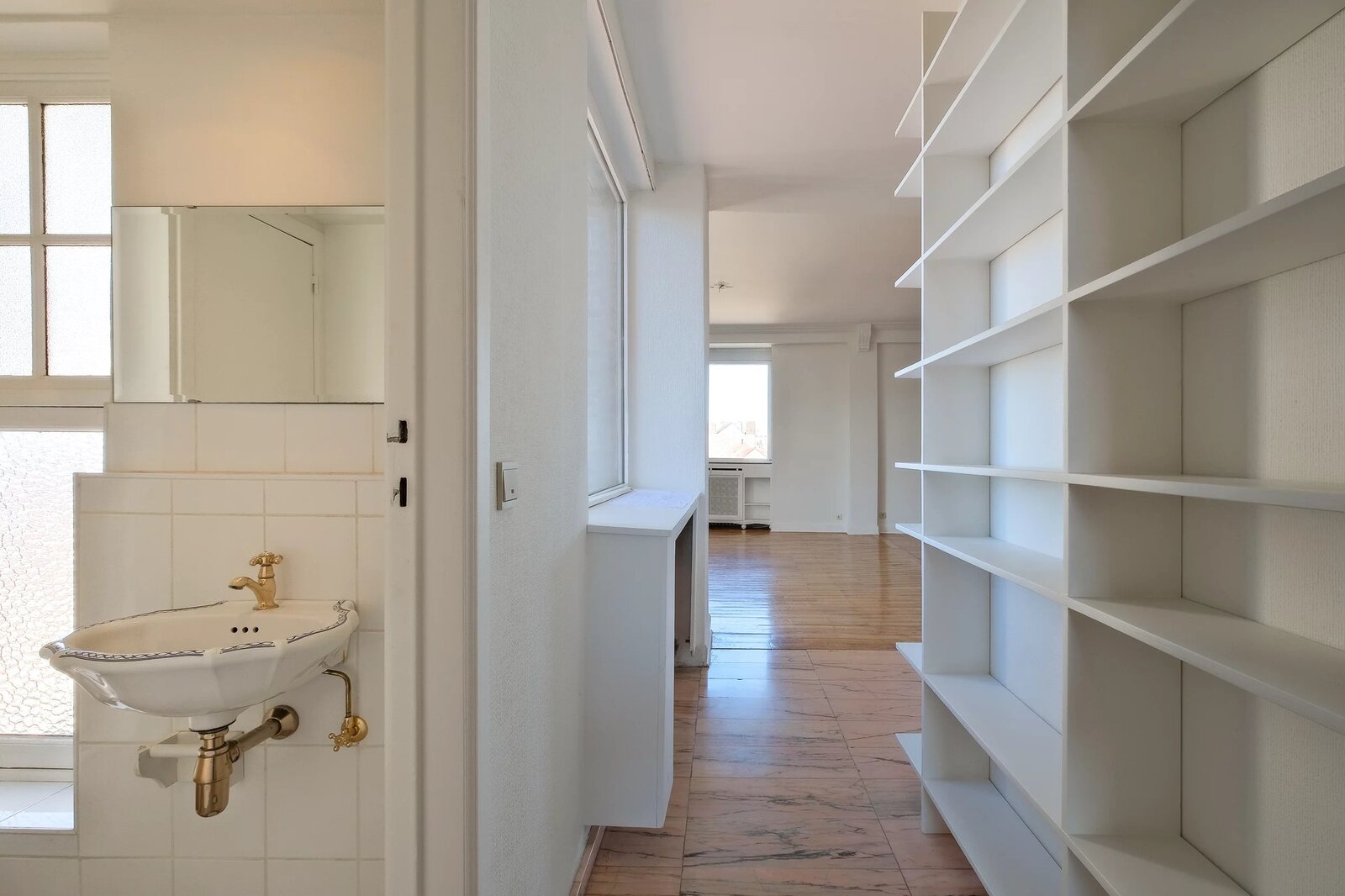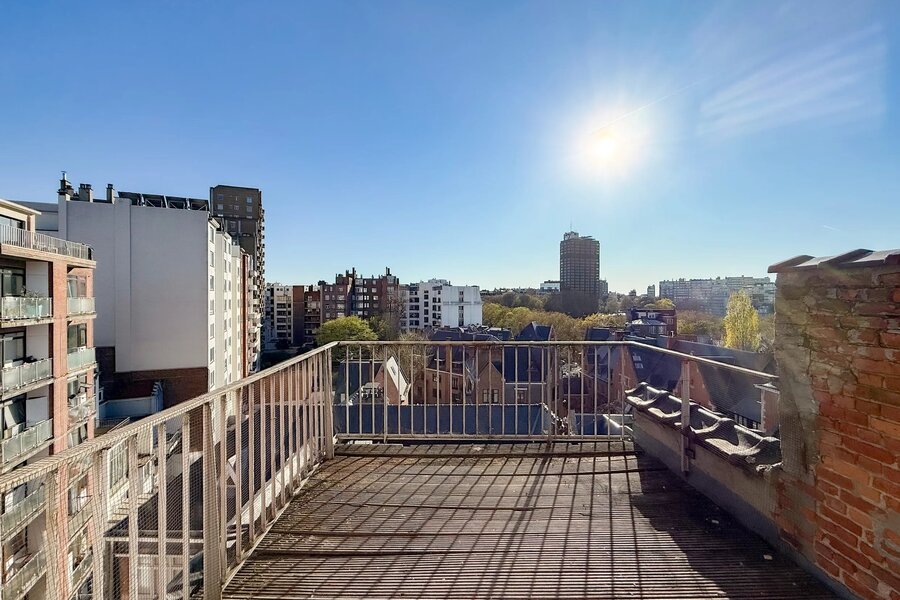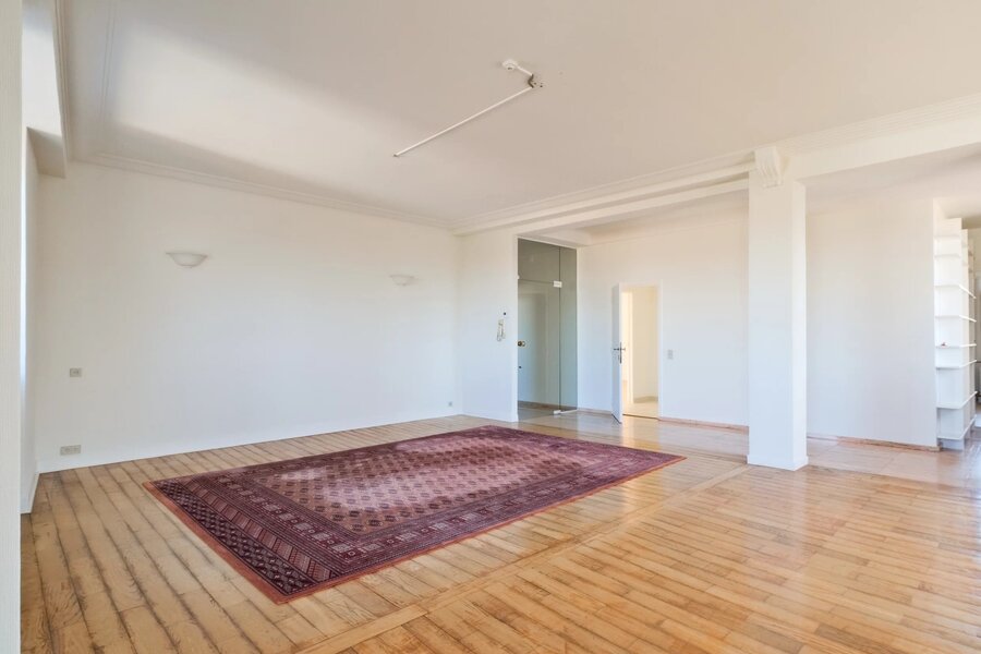 Square of Val de la Cambre, near the Étangs d’Ixelles and Bois de la Cambre, a magnificent apartment with a total gross area of approximately 183 m², with converted attics of approximately 30 m² gross, featuring a southwest-facing terrace. It is composed as follows: entrance hall, living room of approximately 67 m², separate kitchen, separate WC, hallway, master bedroom of approximately 18.5 m² with shower room (bidet and WC), second bedroom of approximately 11.5 m² (legal situation: dressing room) with adjoining bathroom (with bidet), third bedroom of approximately 25 m².