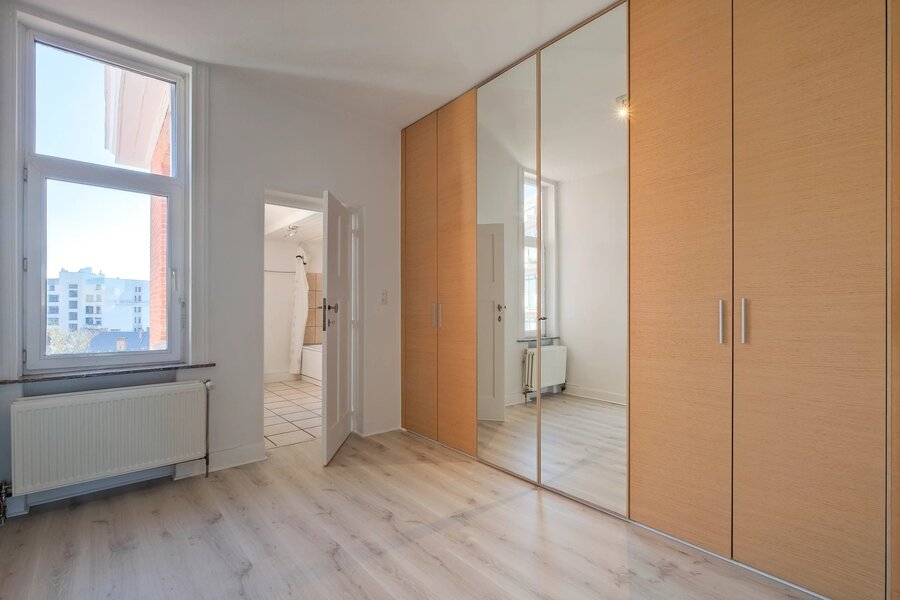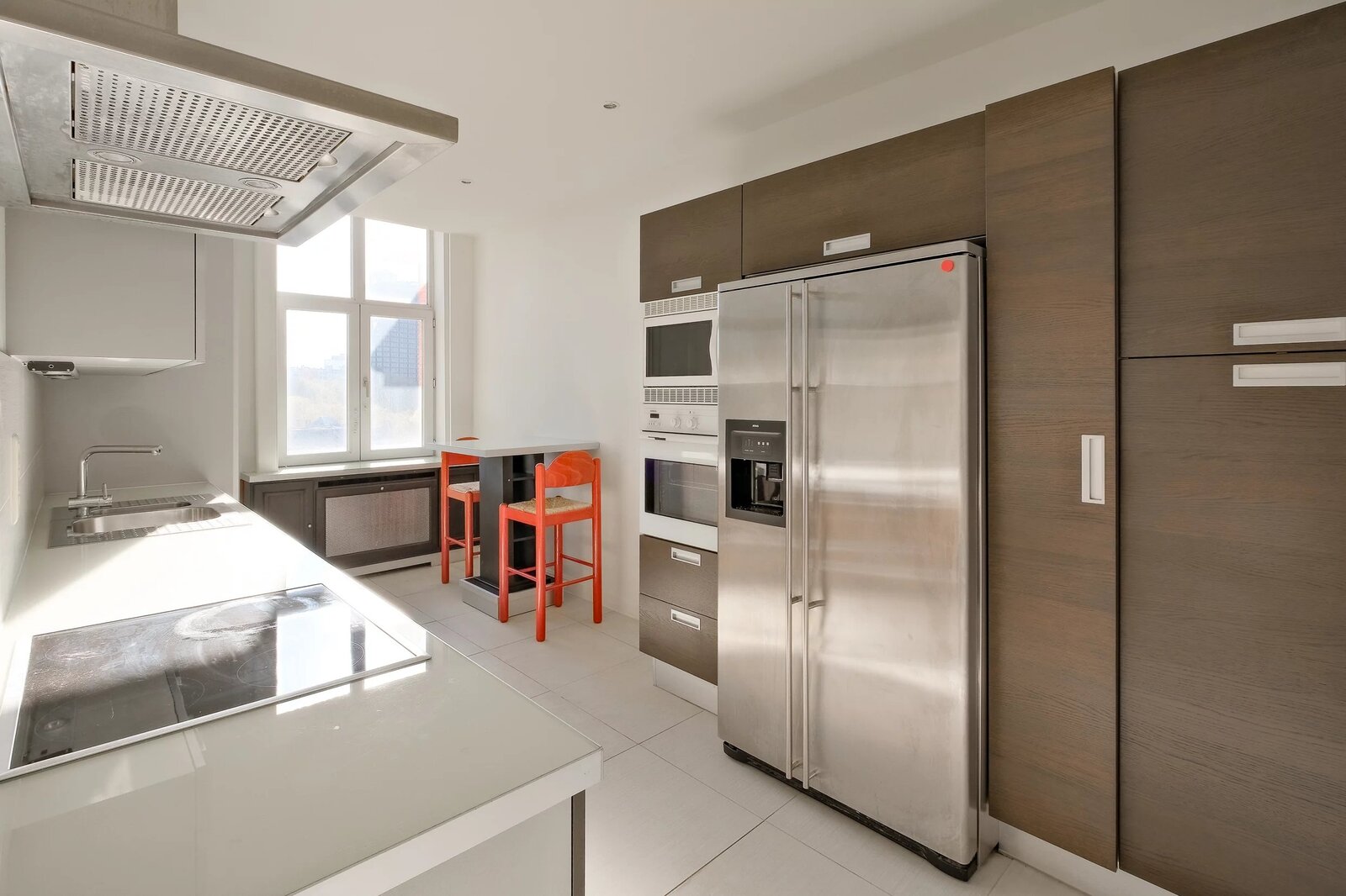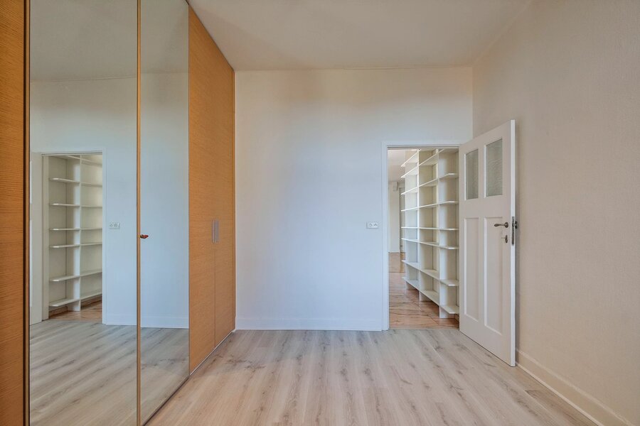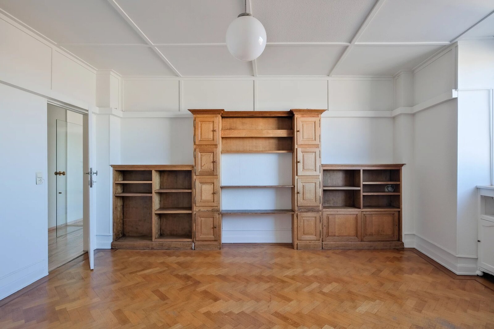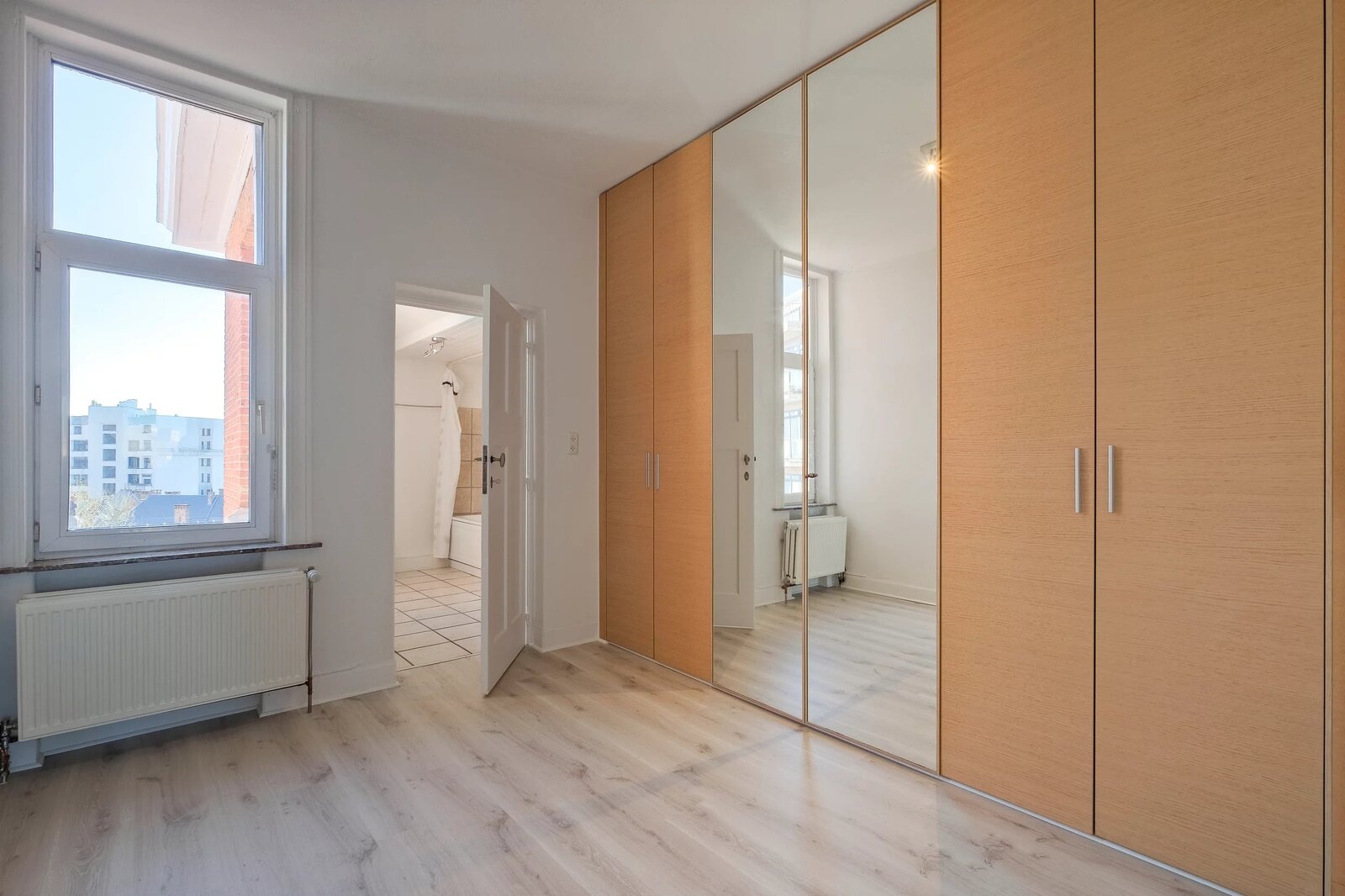 Square of Val de la Cambre, near the Étangs d’Ixelles and Bois de la Cambre, a magnificent apartment with a total gross area of approximately 183 m², with converted attics of approximately 30 m² gross, featuring a southwest-facing terrace. It is composed as follows: entrance hall, living room of approximately 67 m², separate kitchen, separate WC, hallway, master bedroom of approximately 18.5 m² with shower room (bidet and WC), second bedroom of approximately 11.5 m² (legal situation: dressing room) with adjoining bathroom (with bidet), third bedroom of approximately 25 m².