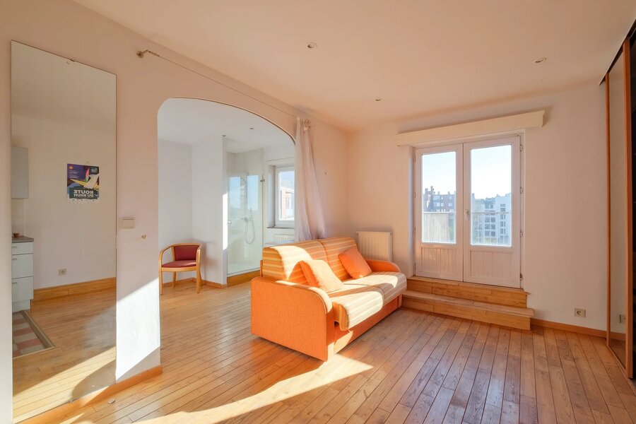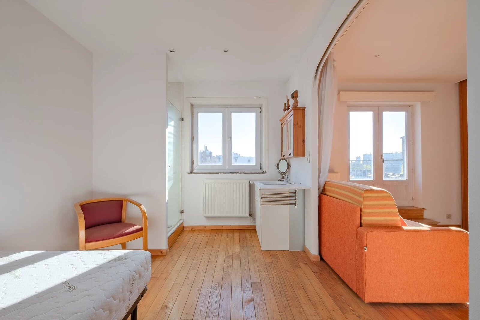 At the attic level: four maid's rooms, including three converted into independent studios (possibility to reconnect them directly to the apartment), as well as a southwest-facing terrace. Also: double glazing, conform electrical certificate, functional stove, individual gas condensing boiler, two cellars, parking possibility in Square of Val de la Cambre. Legal situation: two-bedroom apartment + dressing room. EPC E+. To be discovered as soon as possible at Victoire Junot!
