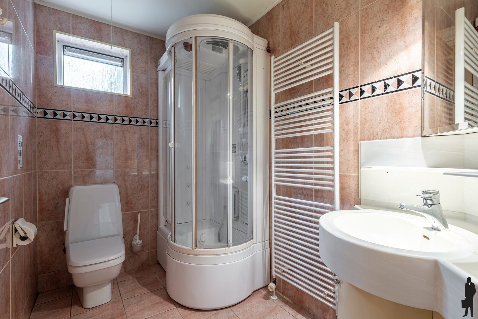 De keuken grenst aan de leefruimte en beschikt over een praktische, aanpalende wasplaats. Verder bevinden zich op het gelijkvloers nog 4 volwaardige (slaap)kamers en een badkamer uitgerust met wastafel, douche en toilet.