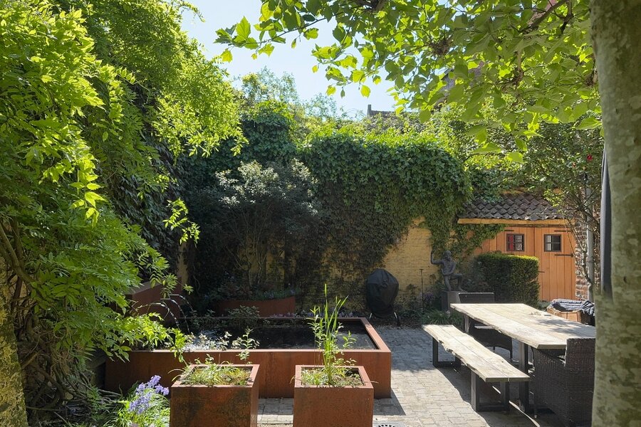 Patershol. Exceptionele eigendom met bijzondere buitenruimte en nabijgelegen overdekte autostaanplaats