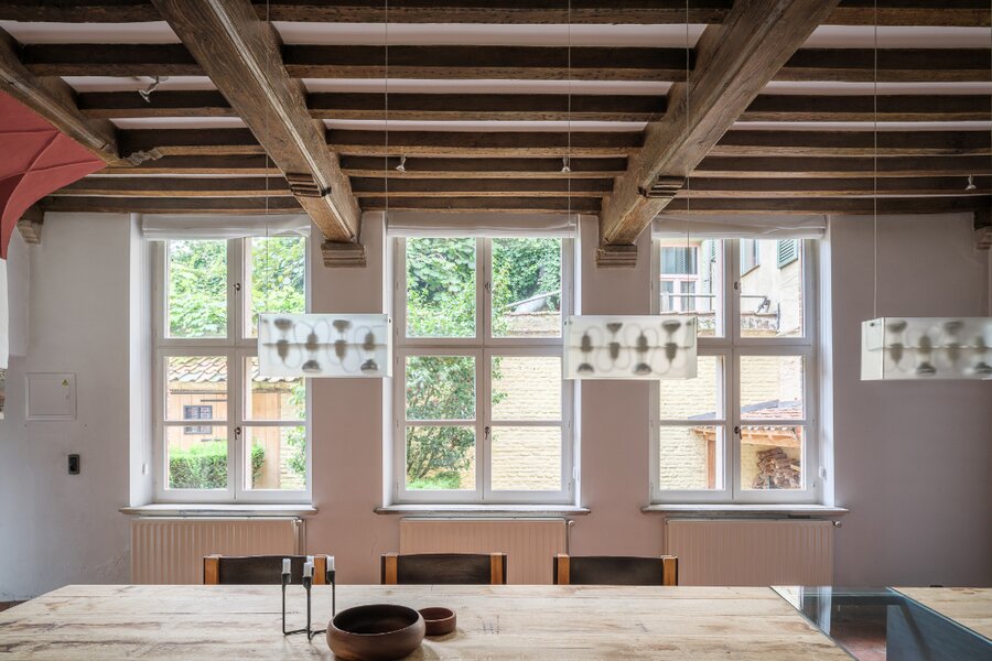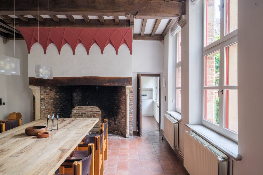 In addition to its exclusive location in the Patershol district, the house offers several impressive living and dining areas, bedrooms, and leisure spaces spread across different levels.