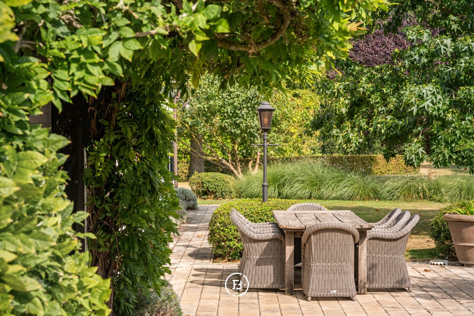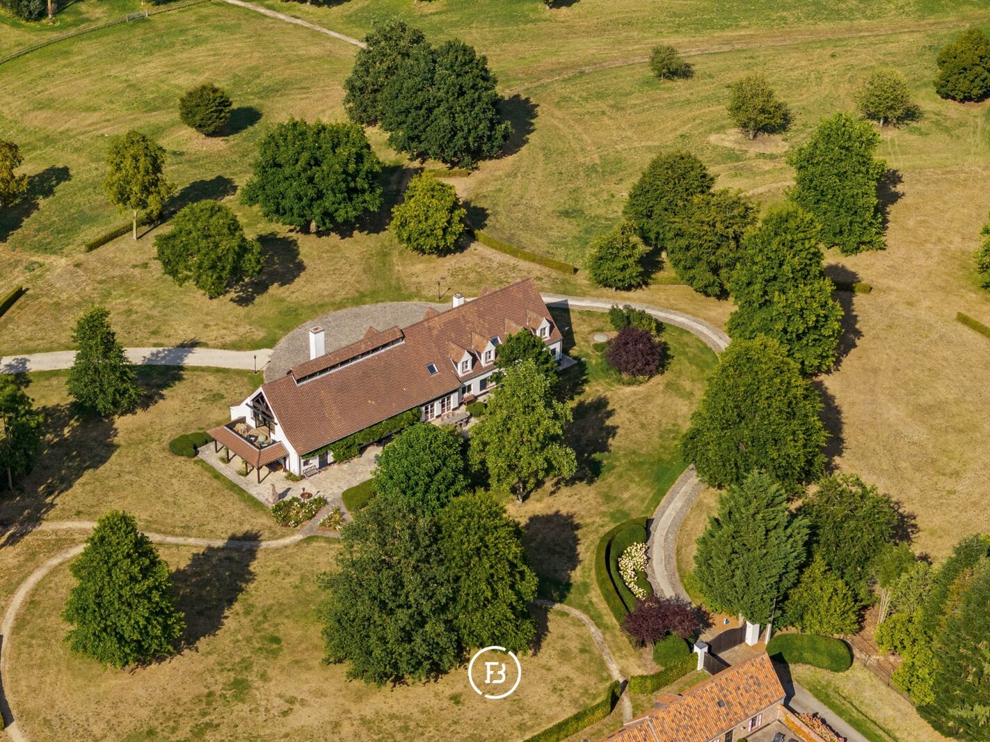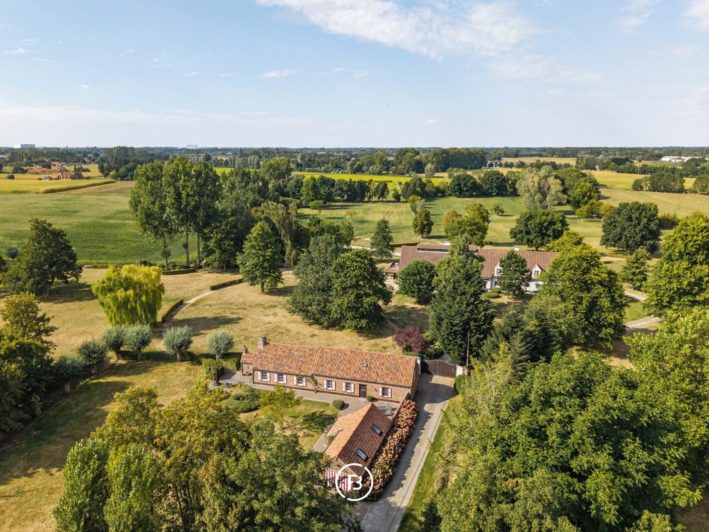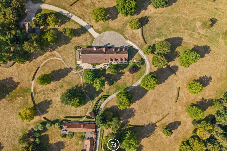 Te midden van de uitgestrekte velden van Kruisem, verscholen aan het einde van een doodlopende straat, ontvouwt zich een domein dat tegelijk tijdloos en uitzonderlijk is. Op maar liefst 12,2 hectare liggen een landelijke villa, een volledig gerenoveerde hoeve en een charmant tiny house, omringd door glooiende weiden en een oude boomgaard die het ritme van de seizoenen volgt.