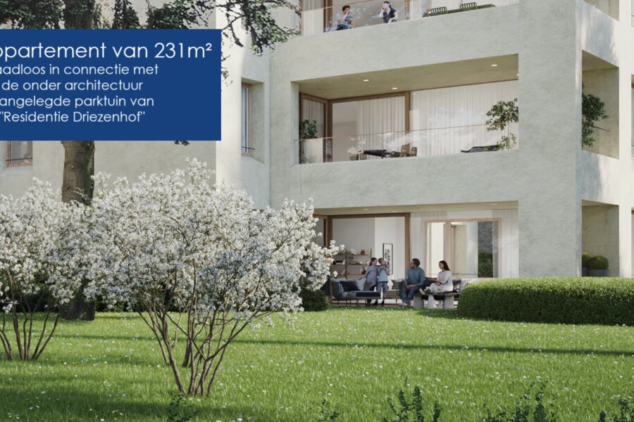 Nr. 1: Gelijkvloers appartement van 231m² met 3 slaapkamers, 2 badkamers en een heerlijk privaat terras 30m² aan de parktuin.