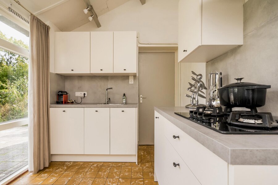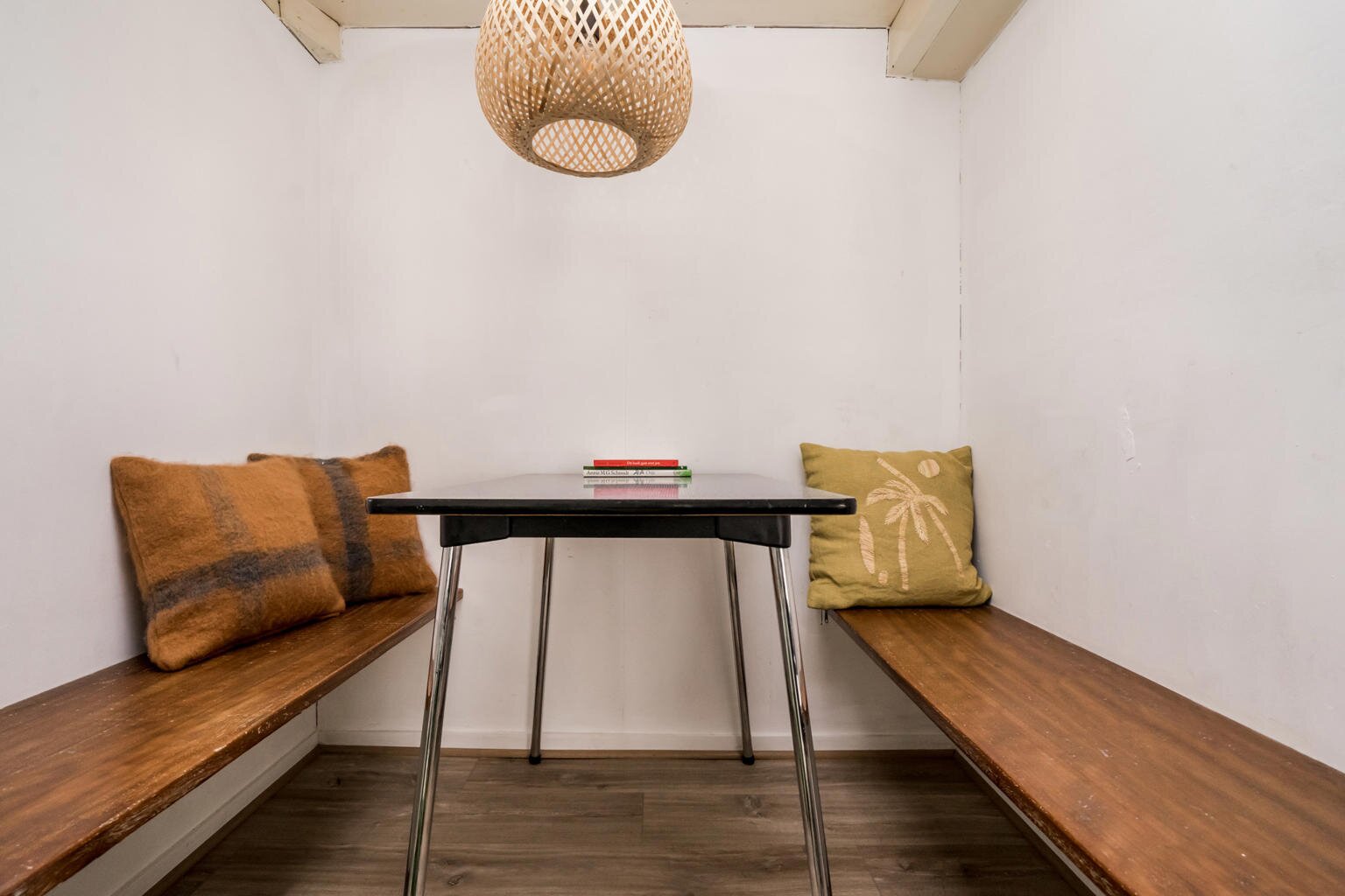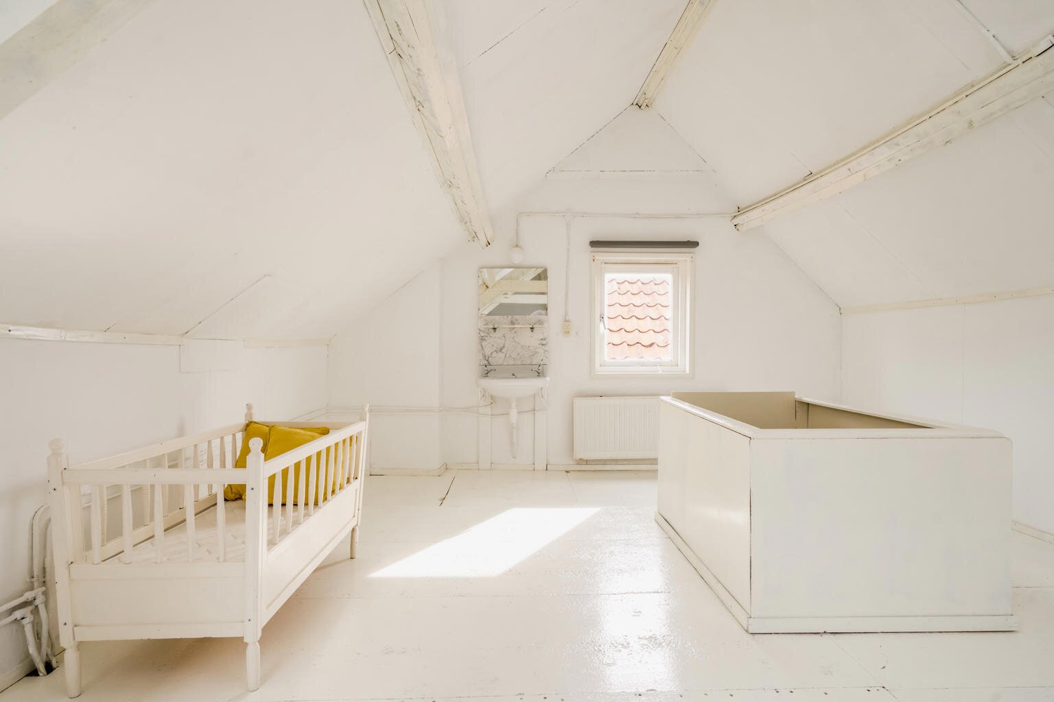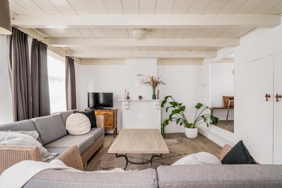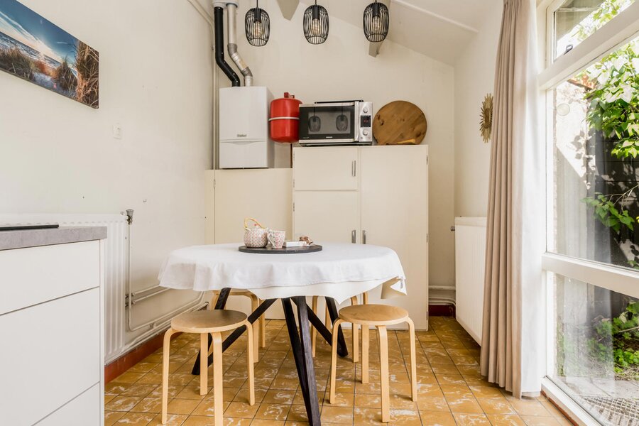 Through the beautiful entrance hall with beautiful, still original tiles, you enter the cosy living room on the street side (with separate, authentic dining and sitting area). Behind it is the kitchen where you overlook the terrace and the giga garden. Cutting greens with a view of greenery? Check. Also on the ground floor are 2 bedrooms and bathroom, including 1 cosy children's bedroom and 1 double bedroom. Both the kitchen and bathroom were very recently renovated (2020). The 1st floor consists of 1 large, super-charming attic room, now an XL bedroom with washbasin. The large, adjoining barn still offers a lot of potential (now storage space and bike storage).