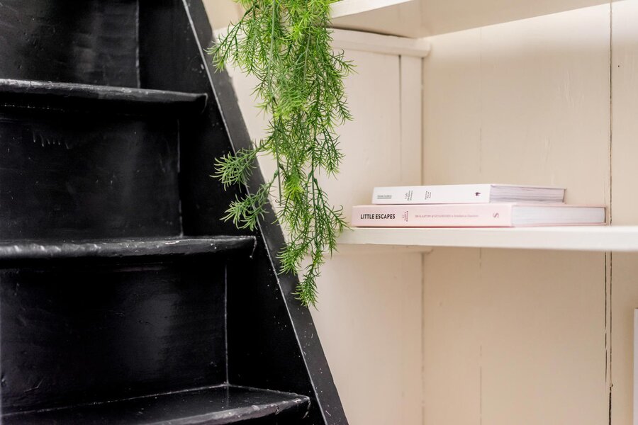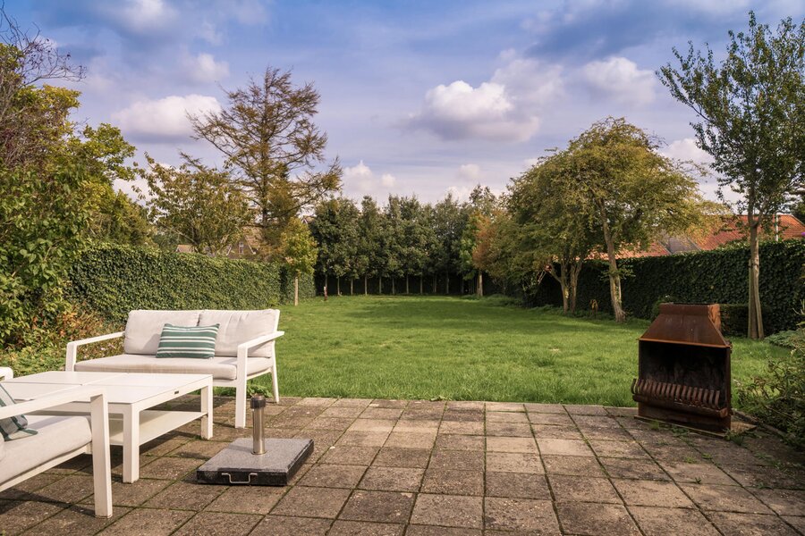 The Truzenhofje, currently a sought-after holiday home (superhost on Airbnb!), has a facade no less than 13 metres wide - stylish black barn included. By bike, you enter through the side, where you are immediately welcomed by the beautiful, deep garden. A green paradise for children and adults alike: play football or kubben while lighting the BBQ while enjoying an aperitif - ideal.