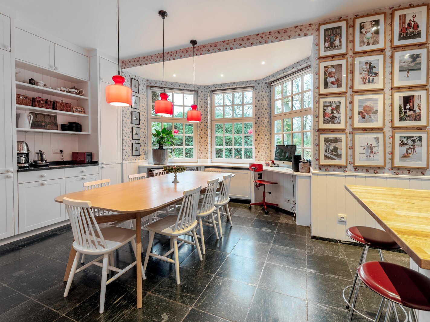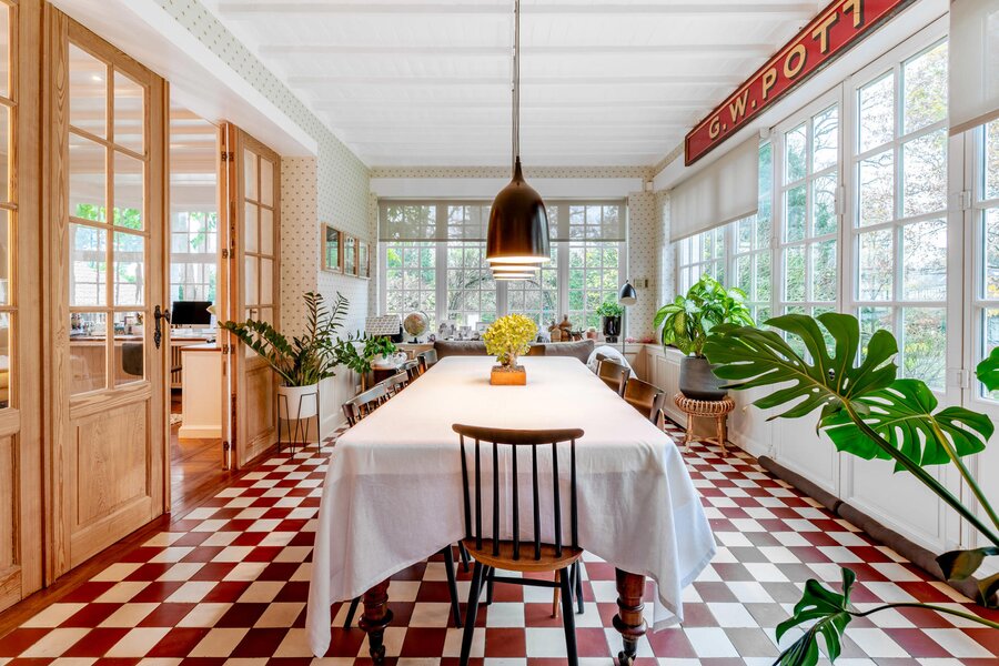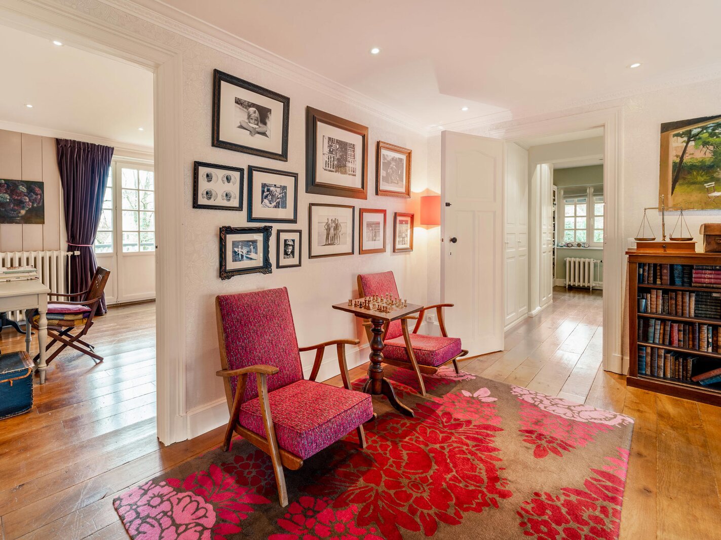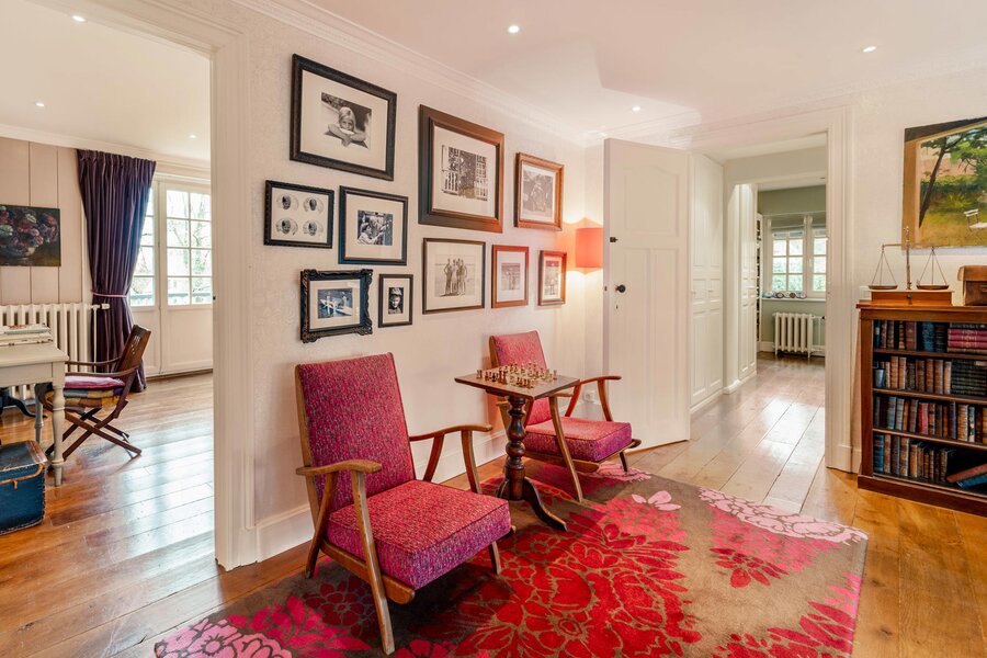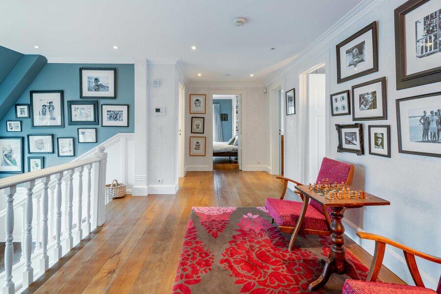 Opening onto a large entrance hall with cloakroom and guest toilet, the house offers large and bright receptions with parquet floor and open fire as well as a dining room, an office and a fully equipped kitchen with breakfast area. The whole is enhanced by a terrace and a garden without opposite. The first floor hosts the master bedroom with dressing room and full bathroom, opening onto a balcony, as well as two large bedrooms with adjacent terraces and a bathroom. The second floor has four bedrooms and two bathrooms. The finished basement includes a games room and a laundry room.