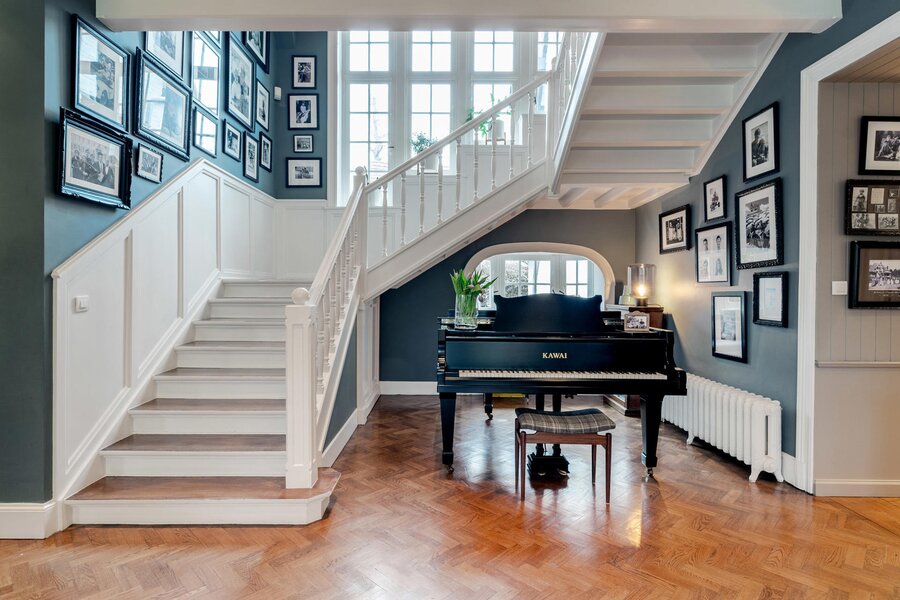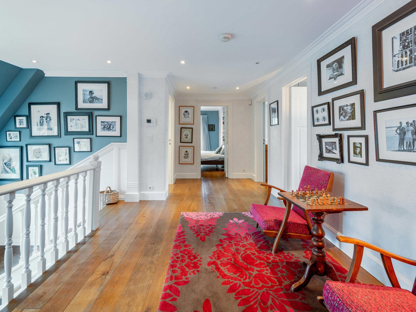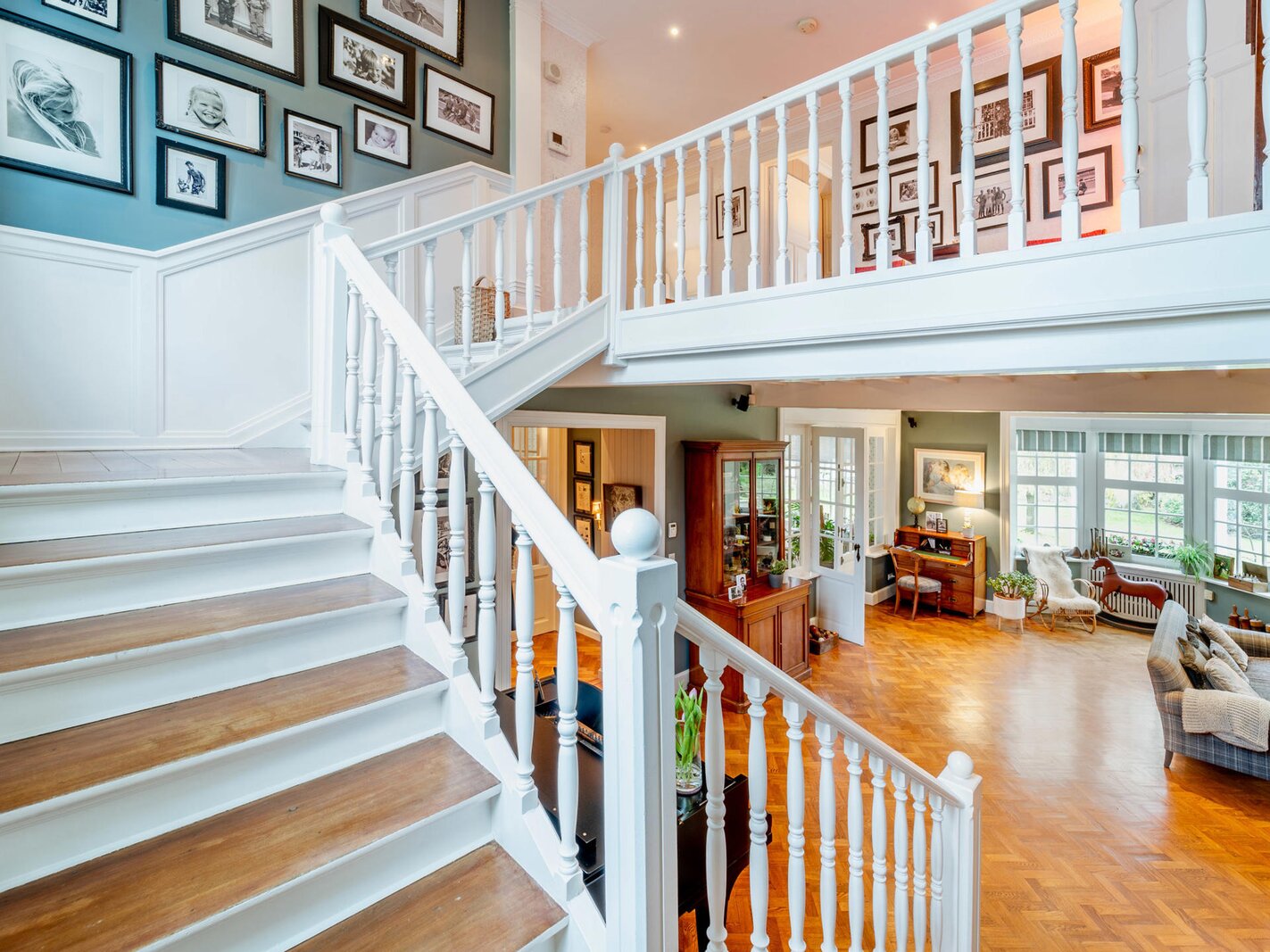 Opening onto a large entrance hall with cloakroom and guest toilet, the house offers large and bright receptions with parquet floor and open fire as well as a dining room, an office and a fully equipped kitchen with breakfast area. The whole is enhanced by a terrace and a garden without opposite. The first floor hosts the master bedroom with dressing room and full bathroom, opening onto a balcony, as well as two large bedrooms with adjacent terraces and a bathroom. The second floor has four bedrooms and two bathrooms. The finished basement includes a games room and a laundry room.