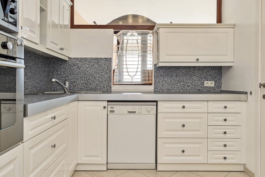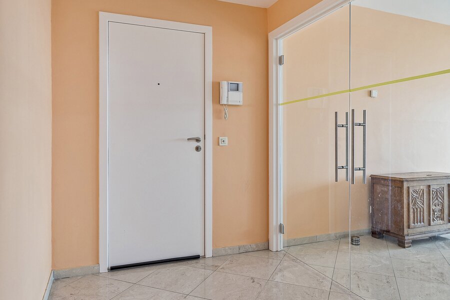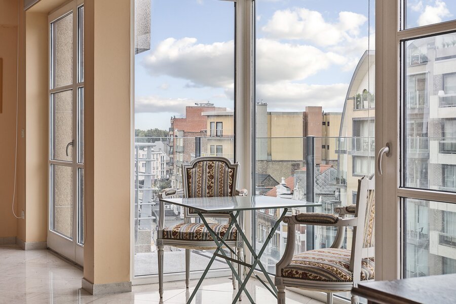 Thanks to its central location on De Panne’s shopping street, the apartment offers stunning panoramic views over the Houtsaeger dunes and the Dumont district. From the living room, you can even catch a glimpse of the sea. Subject to obtaining the necessary permits and works, the apartment could be split again into two 2-bedroom units.