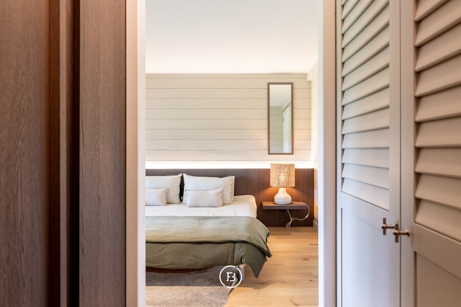 Op de eerste verdieping bevinden zich drie volwaardige slaapkamers en twee badkamers. De master bedroom beschikt over een eigen dressing en een ensuite badkamer, afgewerkt met oog voor comfort en stijl. De andere twee slaapkamers delen een ruime badkamer met ligbad.