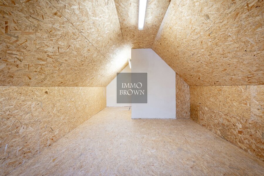 The second floor offers a spacious multipurpose room, perfect as a playroom, office, or relaxation area. There is also the option to easily create a fifth bedroom with bathroom, as the technical provisions are already in place. A large attic provides additional storage space.