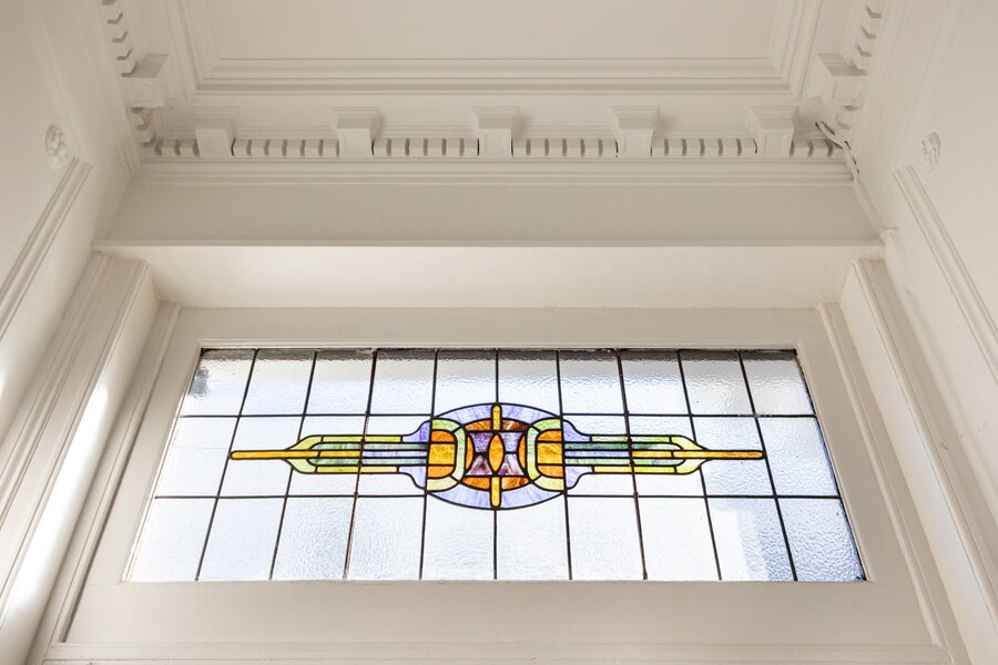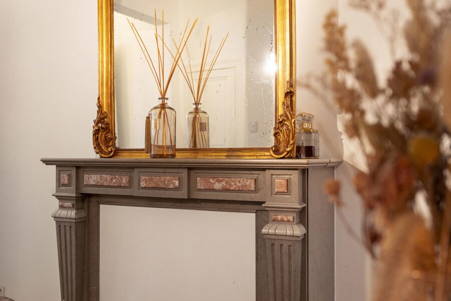 The spacious living and dining areas form the heart of the home, offering the perfect balance of coziness and luxury. The beautiful original fireplace, which accentuates the historical charm of the property, creates a warm, inviting ambiance. This space is perfect for long dinners or cozy evenings with friends and family. The generous living room offers a relaxing view of the inner patio. The open layout allows for a seamless transition between the dining area and the sitting area. The modern comfort of the gas fireplace adds extra coziness, while the large windows overlook the charming patio. Additionally, there is a separate office space, ideal for those who wish to work from home, and two parking spaces, a rare luxury in the city.