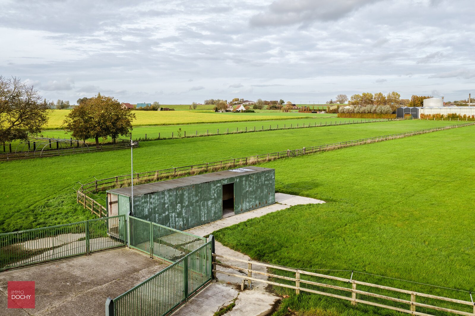 De paardenaccommodatie bestaat uit 16 paardenboxen, een geïsoleerde binnenpiste (20 x 40 m) met sprinklersysteem, een paddock (20 x 60 m) en omheinde weides.