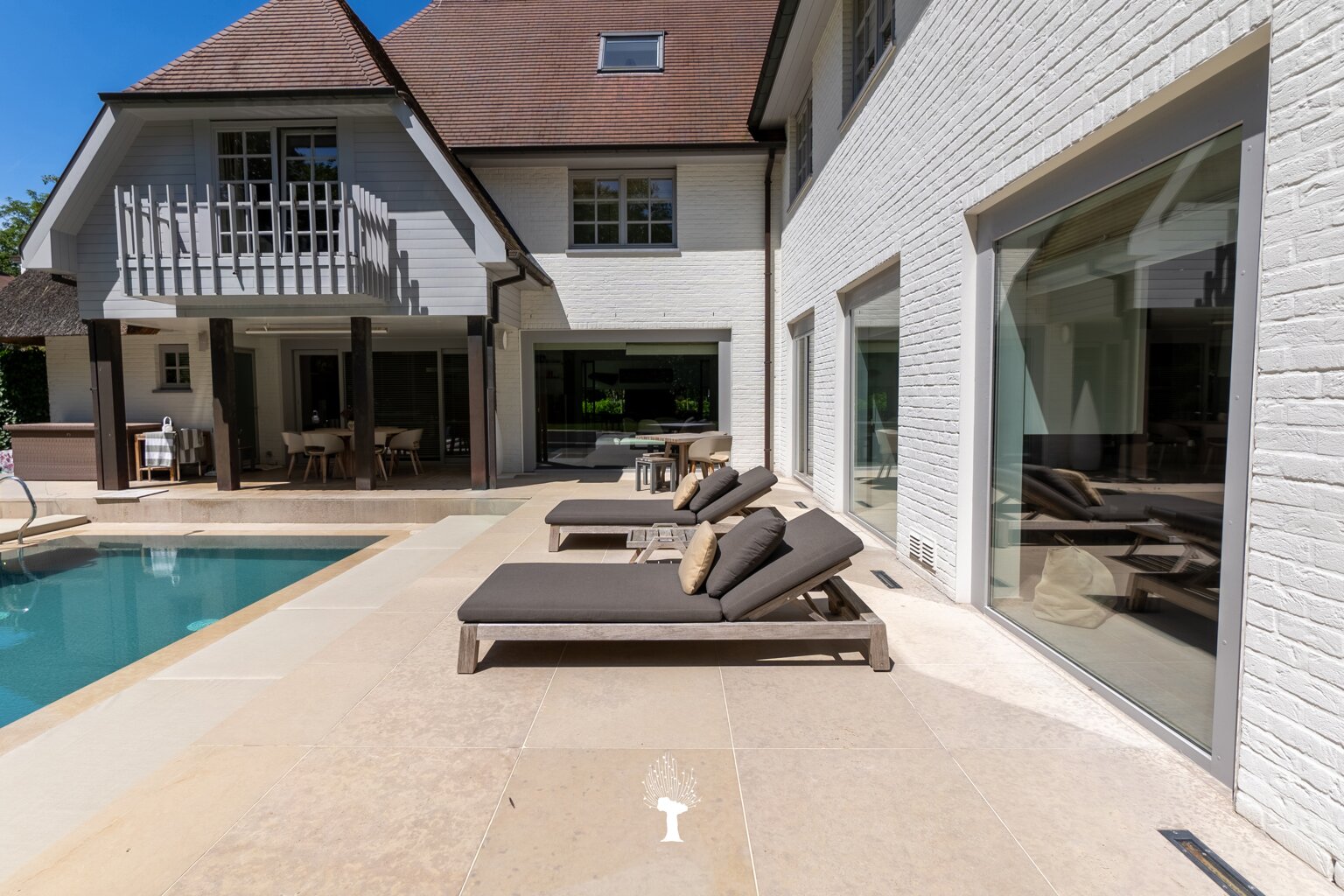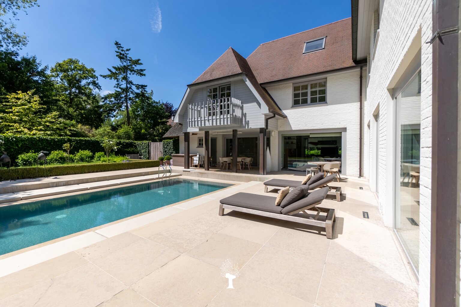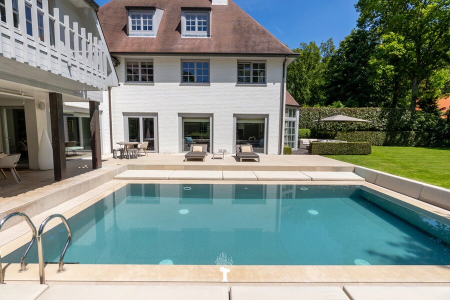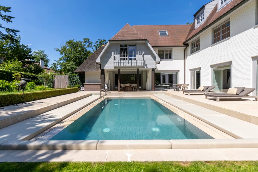 Majestueuse villa sise sur un terrain de 1.475 m², située en deuxième ligne, à courte distance du "Royal Zoute Golf Club" et des plaisirs de la plage. Tranquillité assurée à l'abri des regards indiscrets! Composition: au rez: Hall d'entrée avec vestiaire et toilette. Vaste living lumineux avec feu ouvert et accès aux terrasses et piscine chaufée. Salle à manger avec feu ouvert. Vaste cuisine à l'américaine attenante donnant sur une terrasse couverte. Salle de douche, 2ème toilette et garage pour 2 voitures. 1er Etage: Master bedroom avec dressing et 2 salles de bains (homme et femme). Deuxième et troisième chambre à coucher avec beaucoup de volumes de rangement et salle de bains attenante. 2ème étage: Chambre d'amis avec salle de bains. Studio avec kitchenette et petite chambre. Confort total et exclusif: 675m² habitable. Souterrain: Espace technique, buanderie, cave à provisions et cave à vins. Informations et visites, volontiers après rendez-vous en nos bureaux.