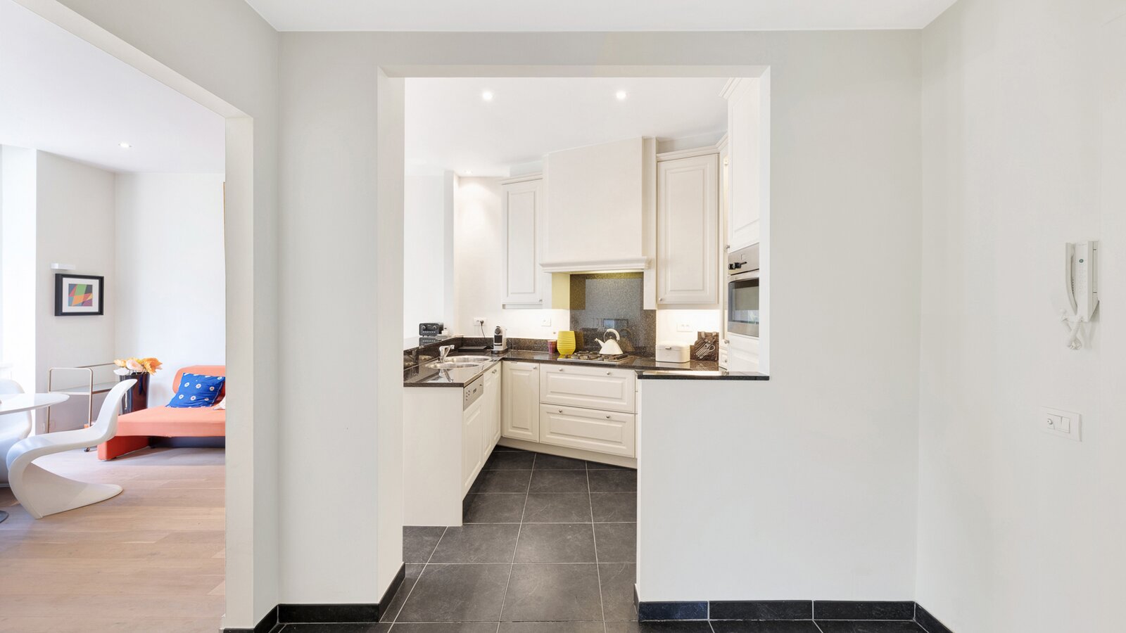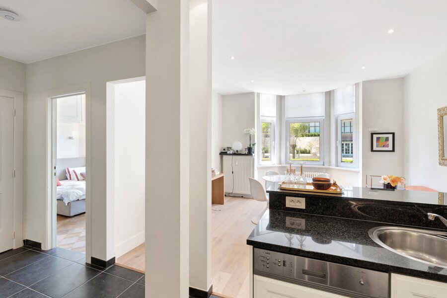 EXCLUSIEF TE KOOP BIJ DIRK WILLEMYNS: Uniek appartement in een traditioneel normandische residentie, op slechts enkele passen van het Albertplein en het strand. Samenstelling: inkomhall met vestiaire en toilet. Ruime woon- en eetkamer. Open keuken. Slaapkamer voor dubbel bed met aansluitende badkamer. Bezoek graag na afspraak op één van onze kantoren.