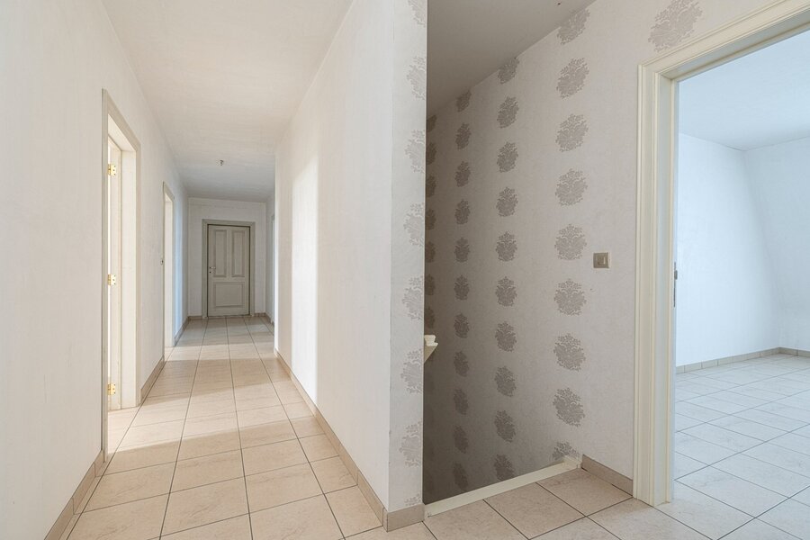 Ruim en kwalitatieve villa gelegen op een goede locatie in de nabijheid van winkels, openbaar vervoer, scholen. De villa heeft een zee aan ruimte en mogelijkheden. Door omstandigheden is de woning amper bewoond en is deze zo goed als nieuw. Deze uitzonderlijke woning omvat 6 ruime slaapkamers, 2 badkamers, een mooie ruime leefruimte met de mogelijkheid voor het plaatsen van een open haard, een compleet uitgeruste keuken met eetzone, eetkamer, wasplaats/bijkeuken, berging, dubbele inpandige garage. Buiten vinden we een mooie en onderhoudsvriendelijke landelijke tuin terug.