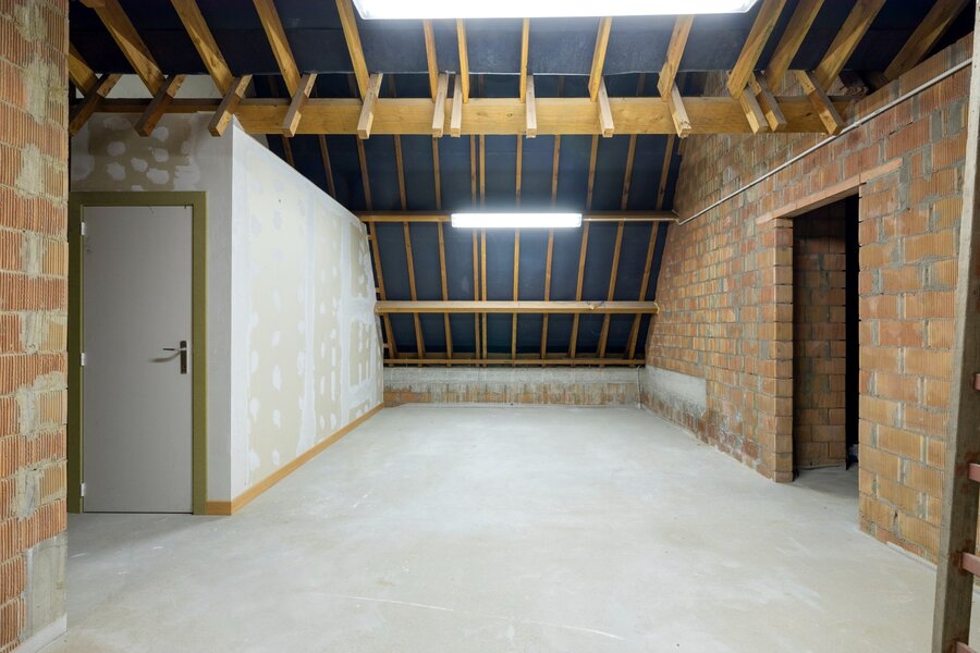5 grote ruimtes ( slaapkamers) waarvan 1 dienst kan doen als extra badkamer. De rechtse zolder-stockage-ruimte is te bereiken via de nachthal via waar we de slaapkamers en extra badkamer terugvinden. Indien gewenst kunnen er dus nog meerder slaapkamers of andere ruimtes voorzien worden zonder te moeten uitbreiden. De trap naar deze verdieping zit netjes verscholen tussen de inkomhal en achterliggende ruimte. Deze zone is afsluitbaar.