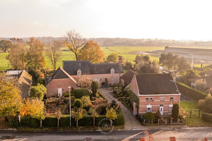 Het geheel rust op een uitzonderlijk perceel van bijna 12.000 m², inclusief een achterliggende weide — ideaal voor dierenliefhebbers of wie houdt van ruimte en privacy. Bovendien behoren een grote schuur en twee vooraan gelegen bouwgronden met af te breken woning tot de eigendom.