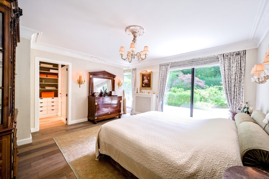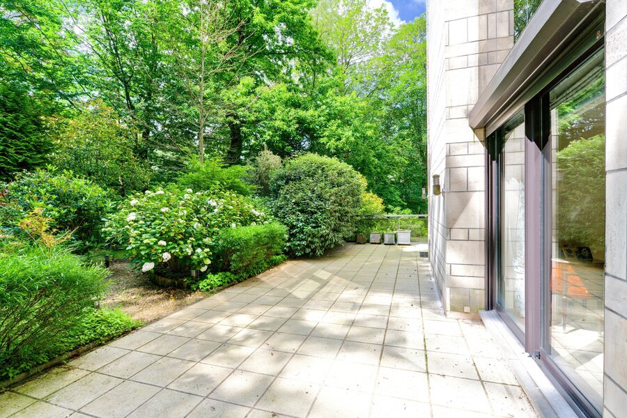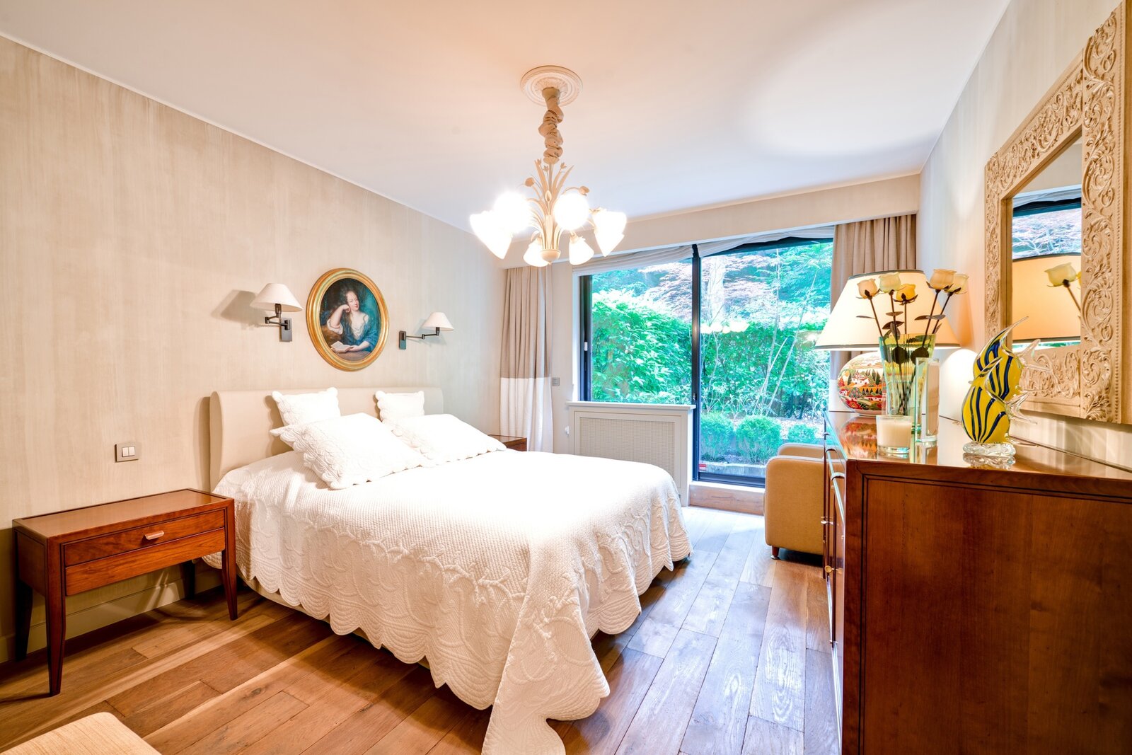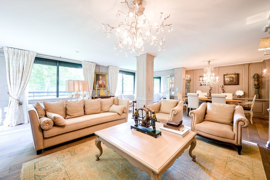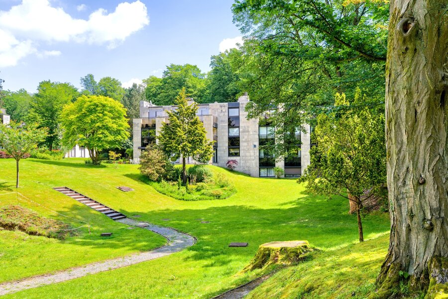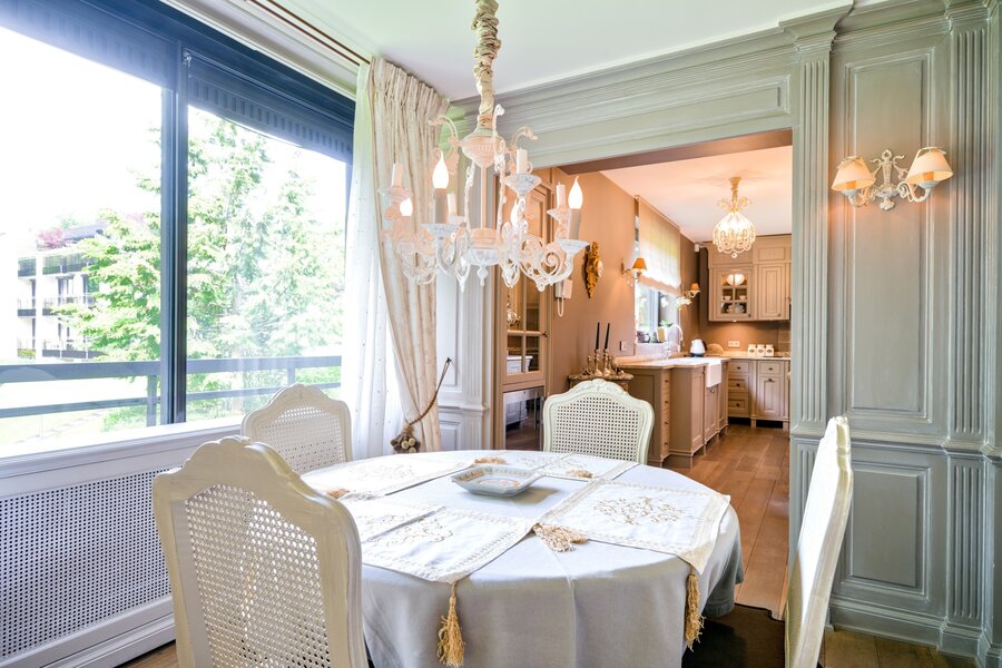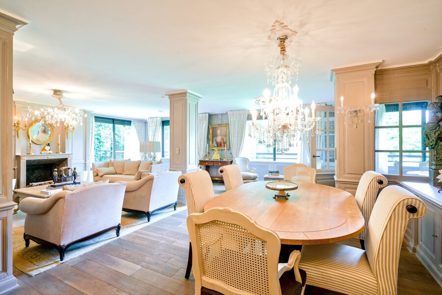Uccle, close to forêt de Soignes, 10' walk from Fort jaco, in a park of 1,6 ha with outdoor swimming pool, lovely duplex of ± 260 sqm (excluding terraces), facing south. This duplex is composed of a large living room of ± 90 sqm with open fire, a beautiful super equipped kitchen , 3 large bedrooms with dressings, including an independent area for an "au pair", 1 office, 2 bathrooms, 2 shower rooms, laundry room, individual gas boiler, 2 garages. Excellent condition! PEB D+.