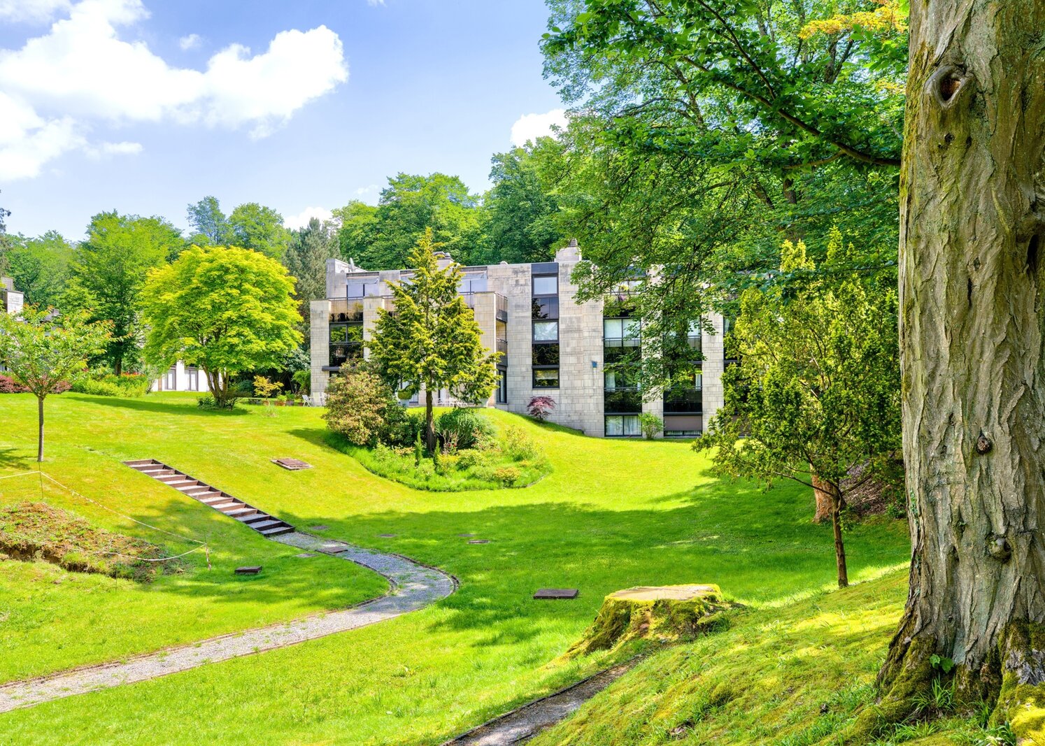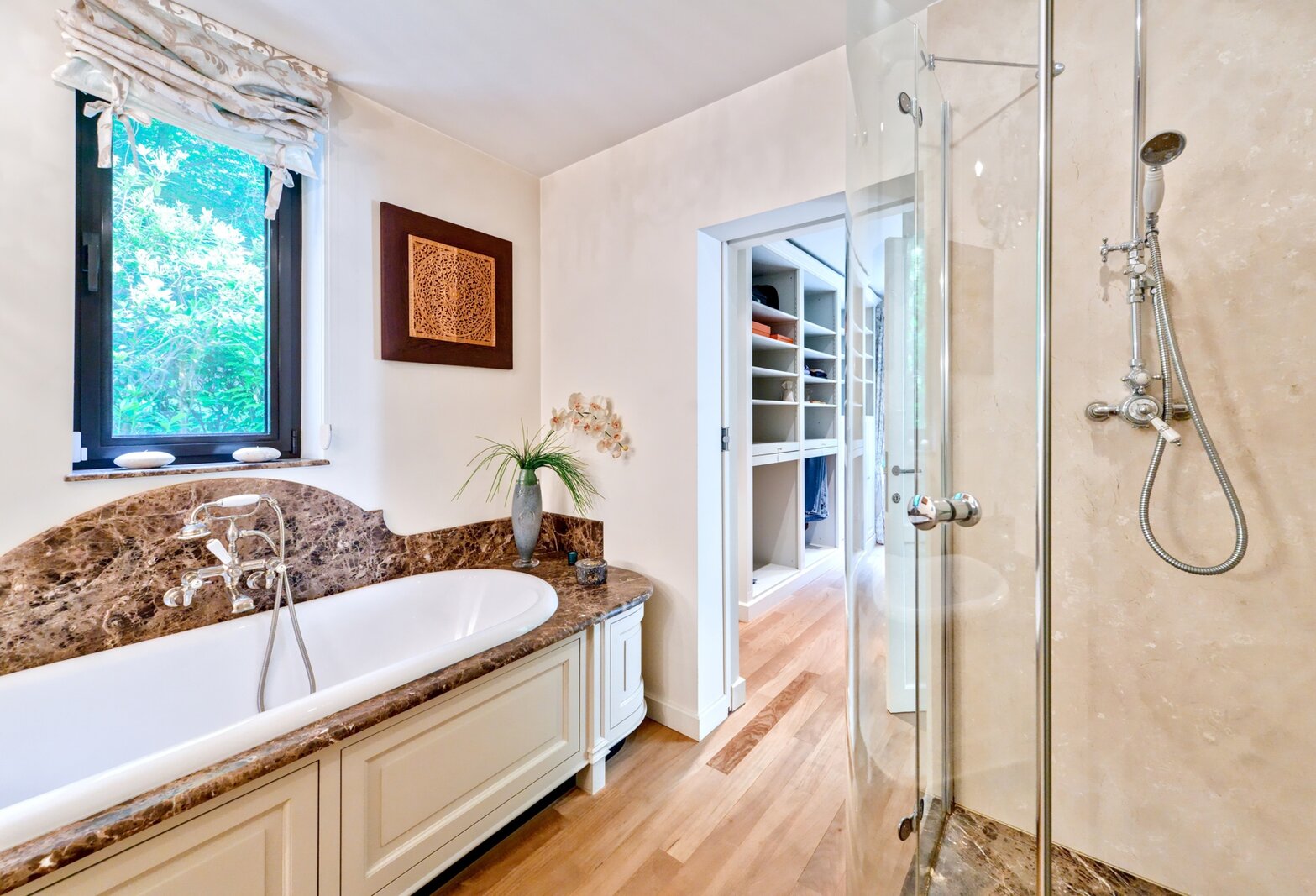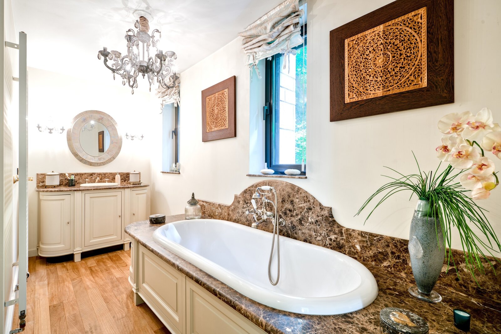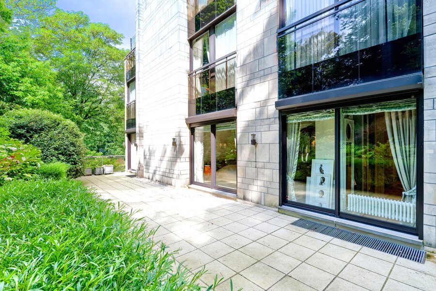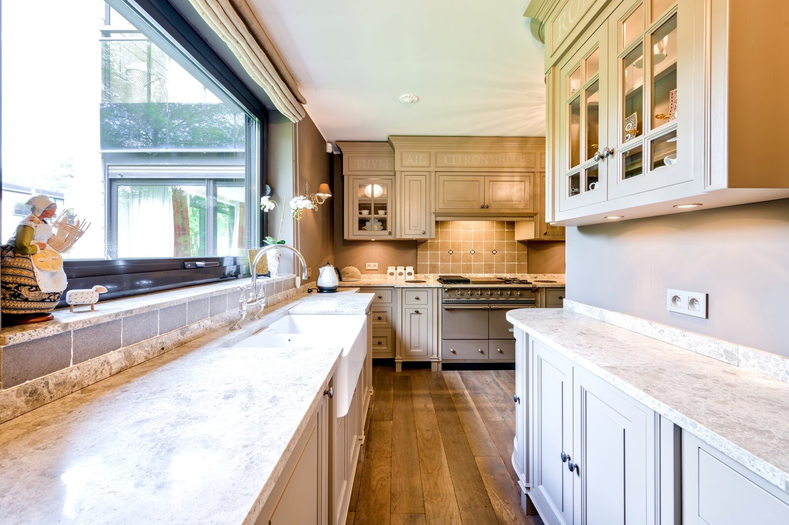 Uccle, close to forêt de Soignes, 10' walk from Fort jaco, in a park of 1,6 ha with outdoor swimming pool, lovely duplex of ± 260 sqm (excluding terraces), facing south. This duplex is composed of a large living room of ± 90 sqm with open fire, a beautiful super equipped kitchen , 3 large bedrooms with dressings, including an independent area for an "au pair", 1 office, 2 bathrooms, 2 shower rooms, laundry room, individual gas boiler, 2 garages. Excellent condition! PEB D+.