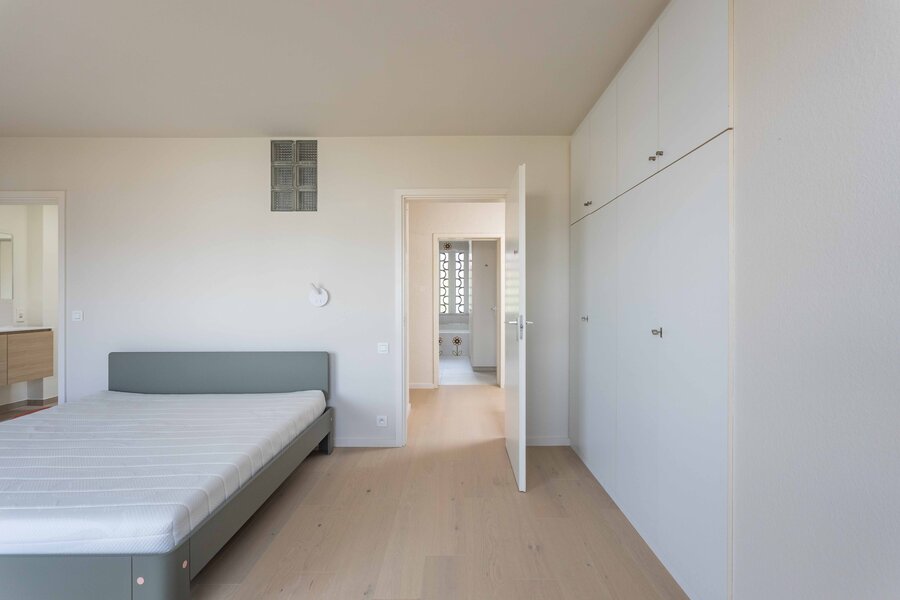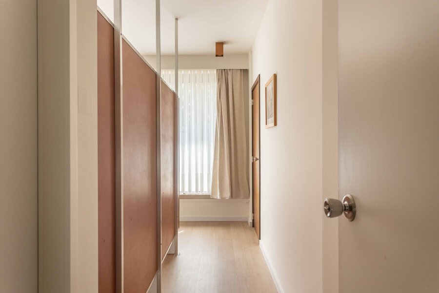 Located in Sint-Gillis-bij-Dendermonde, this modernist 1976 home by architect Emiel Van Lembergen offers a rare blend of timeless design and practical comfort. Fully renovated with respect for its architectural essence, the home features fluid transitions between entry, living areas and kitchen. The ground floor includes a separate-access office space easily converted to additional living area. The house is fully move-in ready, with no extra installation costs: EPC A, heat pump, underfloor heating/cooling, 16 solar panels and compliant systems make it energy-efficient and future-proof. Upstairs, enjoy a bright living room with original fireplace, opening onto a south-facing terrace and green garden views. The site includes private parking. This property is ideal for professionals seeking to combine home and work life, without compromising on style or sustainability. A unique opportunity in a central yet tranquil location.