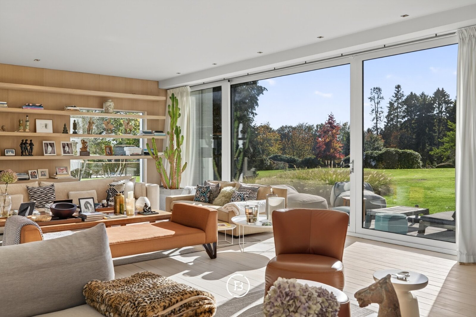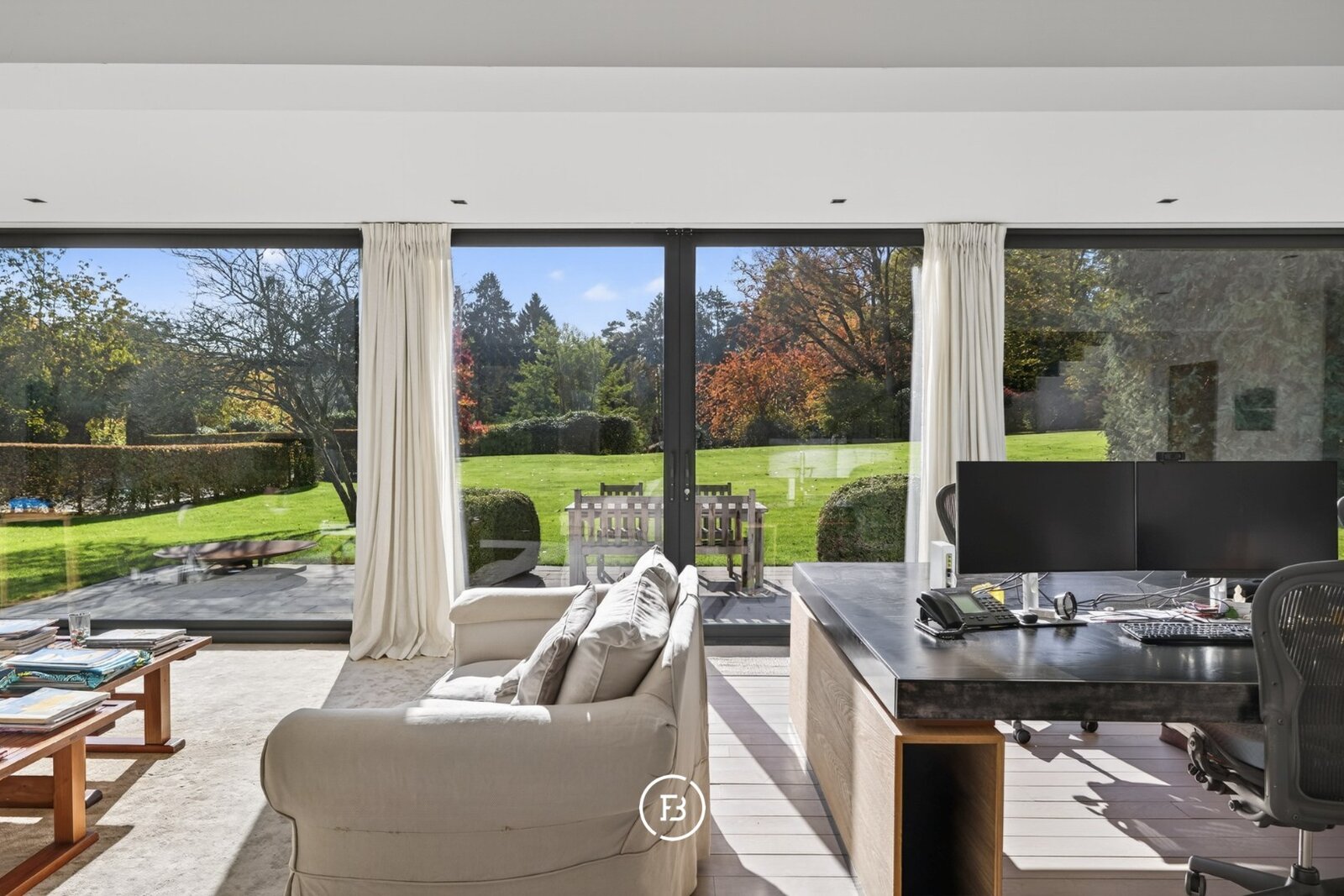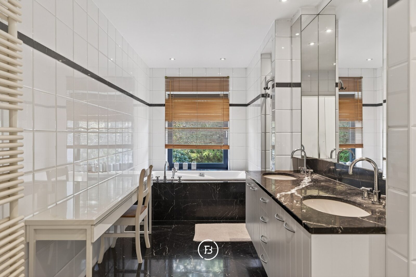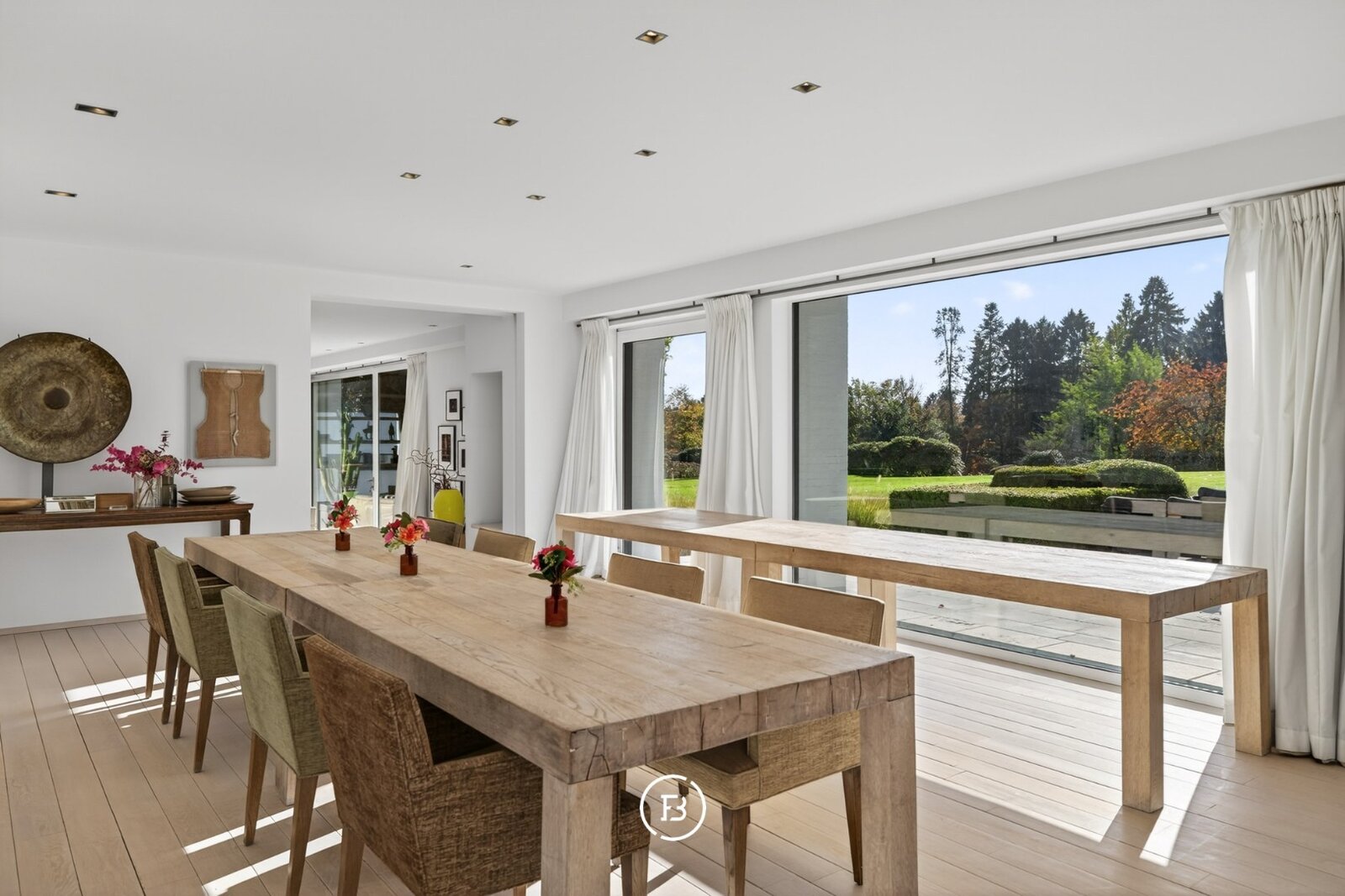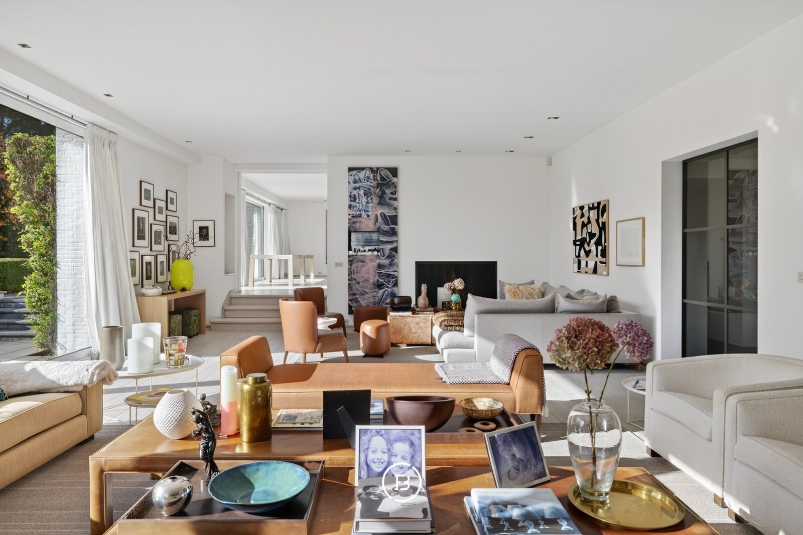 De royale leefruimtes lenen zich zowel tot stijlvol entertainen als tot een discreet en comfortabel gezinsleven. Diezelfde logica zet zich voort in de indeling van de twee vleugels, waar een duidelijke scheiding wordt gemaakt tussen het private en het meer zakelijke of ontvangende gedeelte van de woning.