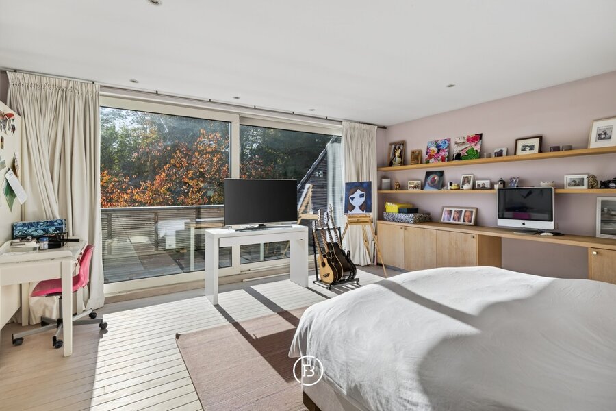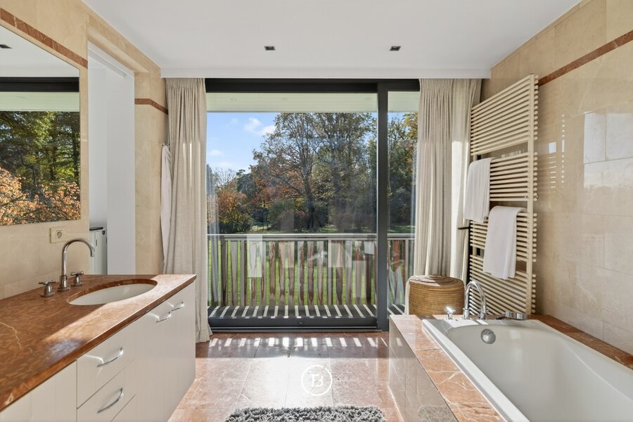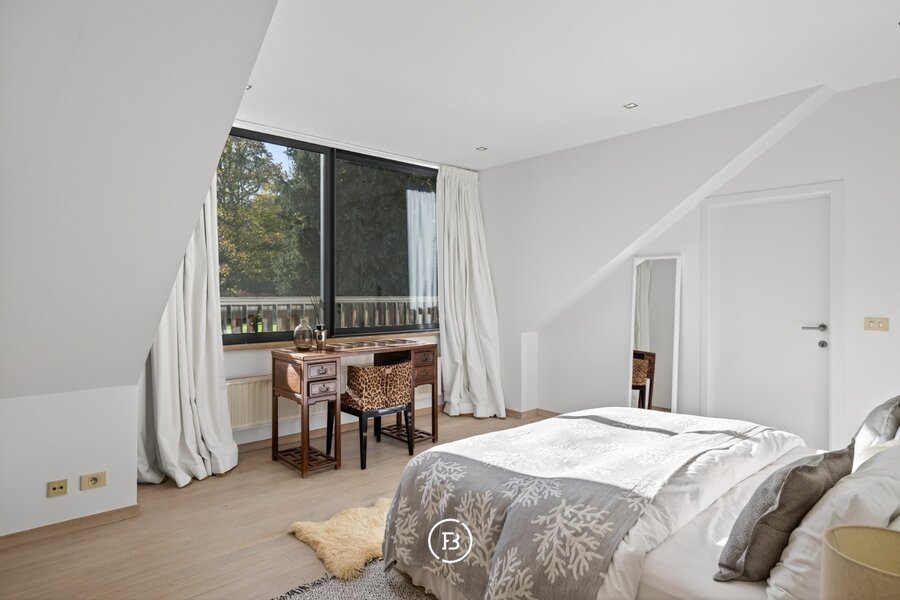 Gelegen op een privédomein in Hoogvorst, een van de meest begeerde woonwijken van Tervuren, onthult deze uitzonderlijke villa haar charme te midden van 1 hectare weelderig parkland. De bewoonbare oppervlakte van 1.017 m² omvat zeven elegante slaapkamers en evenveel badkamers. Grote raampartijen laten het natuurlijke licht overvloedig binnenstromen en creëren een naadloze verbinding tussen de open leefruimtes en de perfect volwassen beplanting en zuid georiënteerde tuin.
