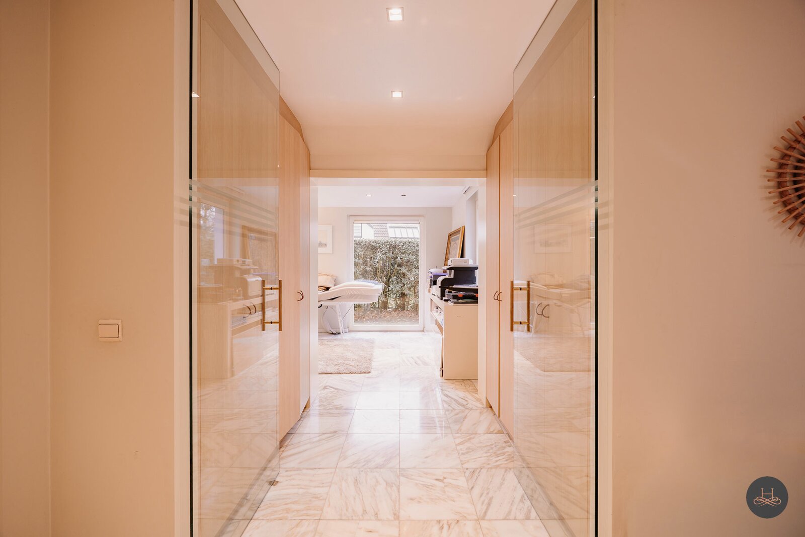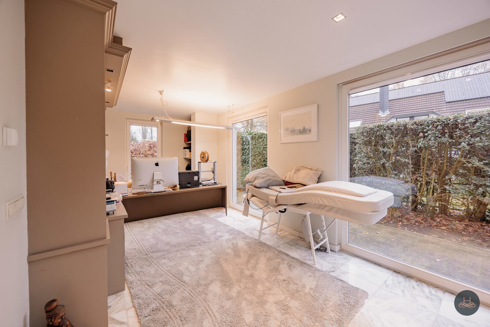 Een van de grote troeven van deze villa is haar veelzijdigheid. De woning leent zich perfect voor een woonst met praktijk- of kantoorruimte of als kangoeroewoning, waarbij privacy en zelfstandigheid voor elke bewoner gegarandeerd blijven. Afzonderlijke zones en circulatie maken het mogelijk wonen en werken harmonieus te combineren, zonder aan woonkwaliteit in te boeten. Dankzij de 21 zonnepanelen is deze woning eveneens zeer energiezuinig.
