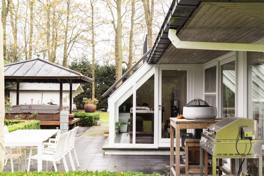 Buiten vormt de tuin een oase van rust, omgeven door groen en volledig afgeschermd van inkijk. Hier geniet u in alle sereniteit van het buitenleven, terwijl u zich toch op een boogscheut bevindt van het centrum van Schoten, scholen, winkels en belangrijke verbindingswegen richting Antwerpen en Nederland.