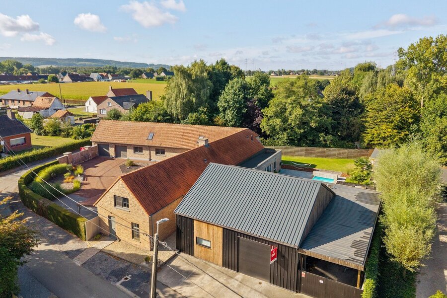 Omarm de gezelligheid en sfeer in deze compleet afgewerkte royale villa met loods en zwembad aan de voet van de Vlaamse Ardennen in Kerkhove. Los van de indrukwekkende bewoonbare oppervlakte op het gelijkvloers zijn er heel veel mogelijkheden om wonen en werken te combineren, co-housing of combinatie wonen en B&B met heel veel privacy.