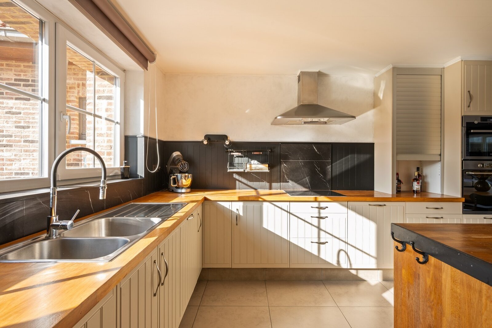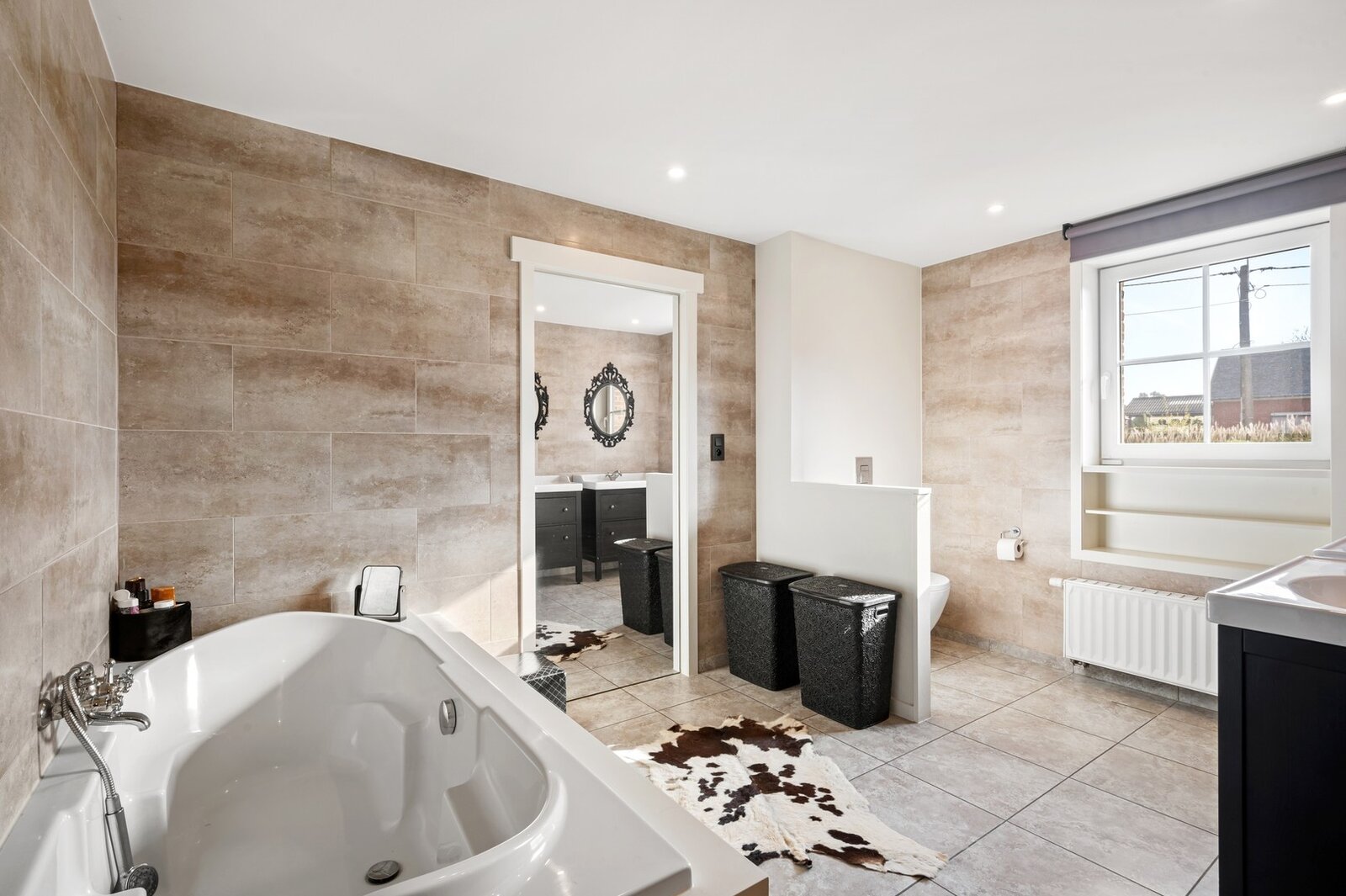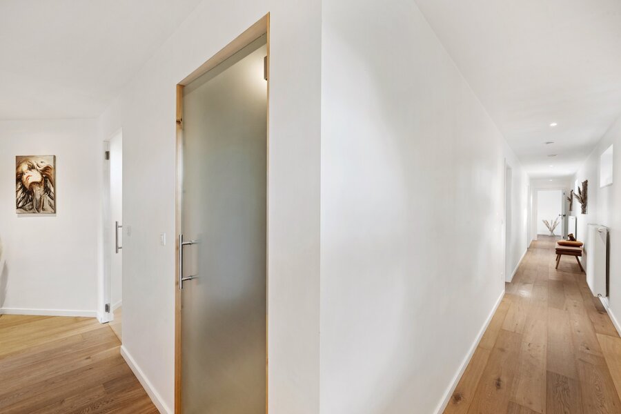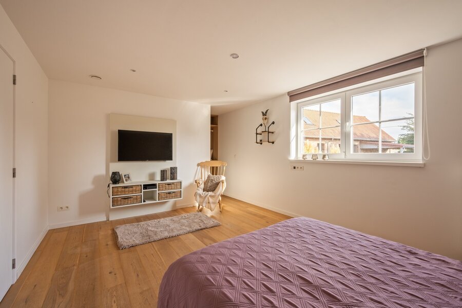 De woning kom je binnen via een inkomhal met toilet naar een adembenemend gezellige woonruimte met aansluitende leefkeuken en zicht op de tuin met terras en zwembad. Via een klapdeur wordt je meegenomen in een indrukwekkende nachthal die door de tweede vleugel slingert met een bijkomend toilet, douche, 2 ruime slaapkamers met dressing in spiegelbeeld, een derde slaapkamer én een gezellige kamer dat dienst doet als traphal. Aan de andere kant van de eerste vleugel heb je nog een ruime badkamer met ligbad en douche, dressing, 2 kamers en een polyvalente ruimte met mogelijkheden voor of een extra kamer. Genieten buiten kan met een prachtige lounge met buitenkeuken en als je wil doorzakken heb je nog een gezellige poolhouse afgewerkt met vliegenramen.