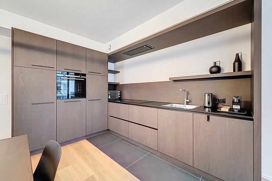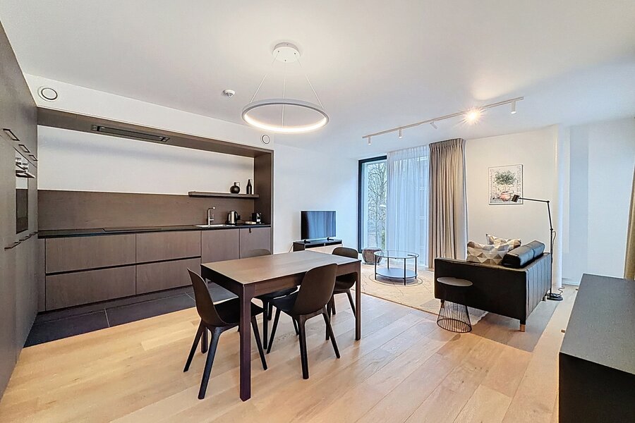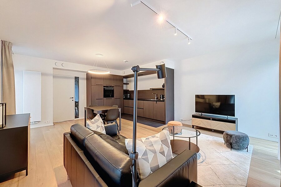 In a quiet street, just steps from the Cinquantenaire Park, this magnificent new, fully furnished apartment offers approximately 75 m² of living space in a small, modern building. It comprises a welcoming entrance hall with a WC, a bright living room with a fully equipped open-plan kitchen (approximately 31 m²), a lovely bedroom (approximately 14 m²) with a large custom-built wardrobe, and a bathroom. A small balcony is located at the front. A cellar is included in the first basement level. Features include video intercom, individual gas boiler, high-quality materials, double-flow ventilation, and triple glazing. Included services: cleaning and linen change every two weeks, bed linen and towels provided, and dedicated customer support. All utilities are included and fixed. Energy Performance Certificate (EPC) rating: A-. Don't miss out – contact Vaneau Lecobel today!